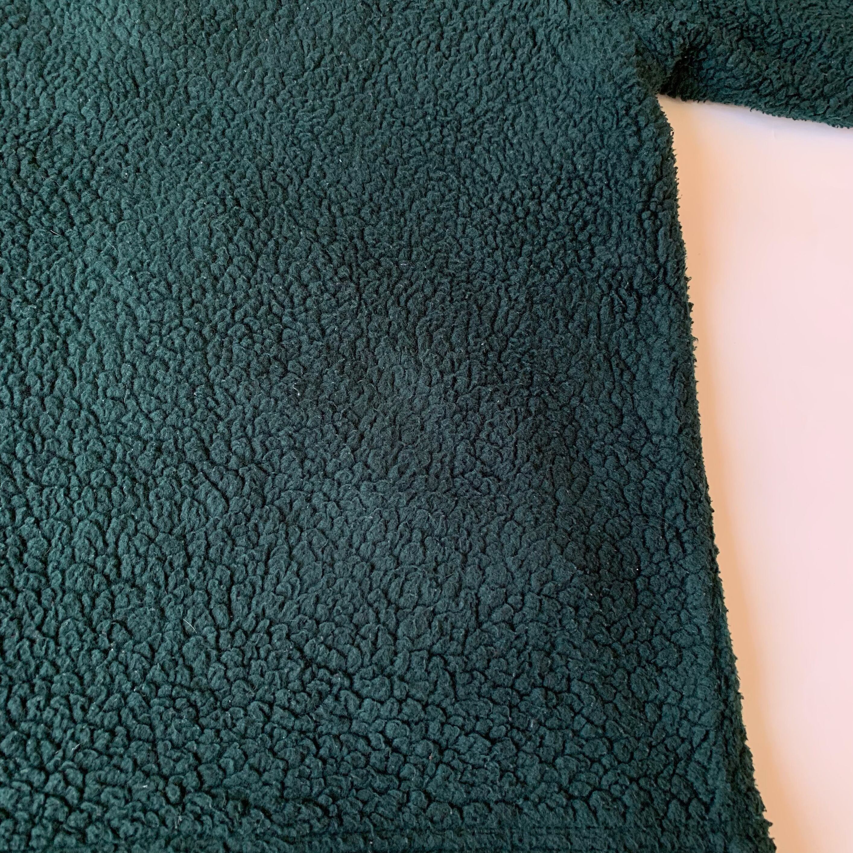 落ち着いたダークグリーンカラーボディ。肉厚でフカフカなPOLARTECフリース。