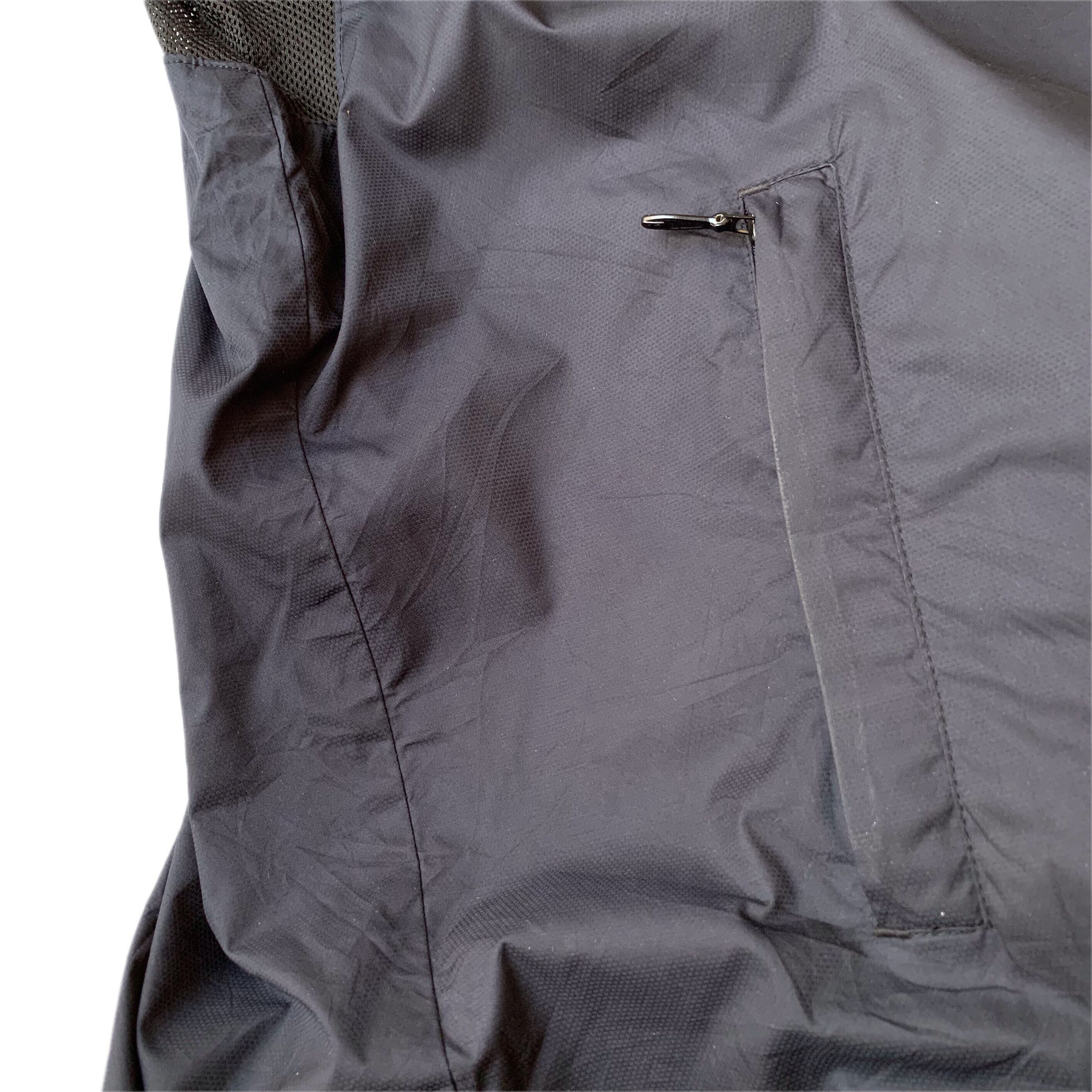後身頃アームホール周りには薄いフリースのような素材での切り替えしが施されています。脇下にはメッシュがあり、通気性は勿論、可動性にも優れています。