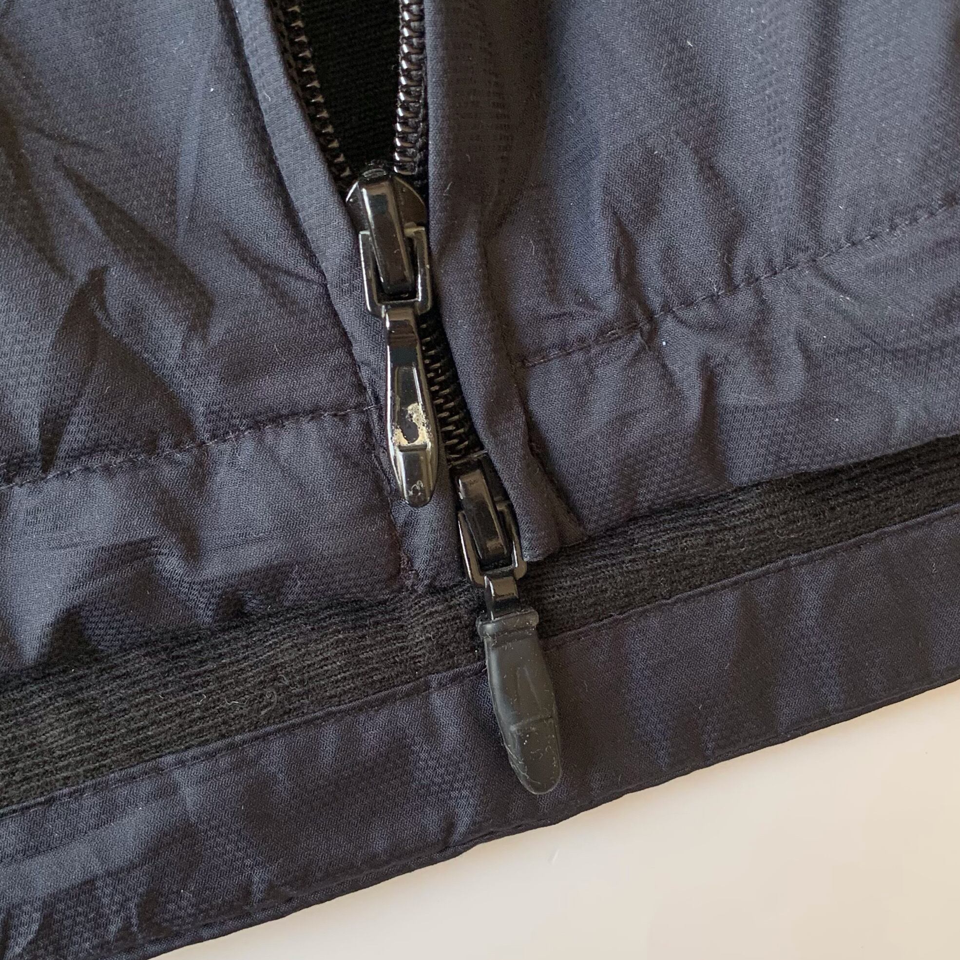 シェルはナイロンのような光沢がありテロテロとした肌触りのポリエステルを使用。身頃のライニングには薄いフリースが貼られています。