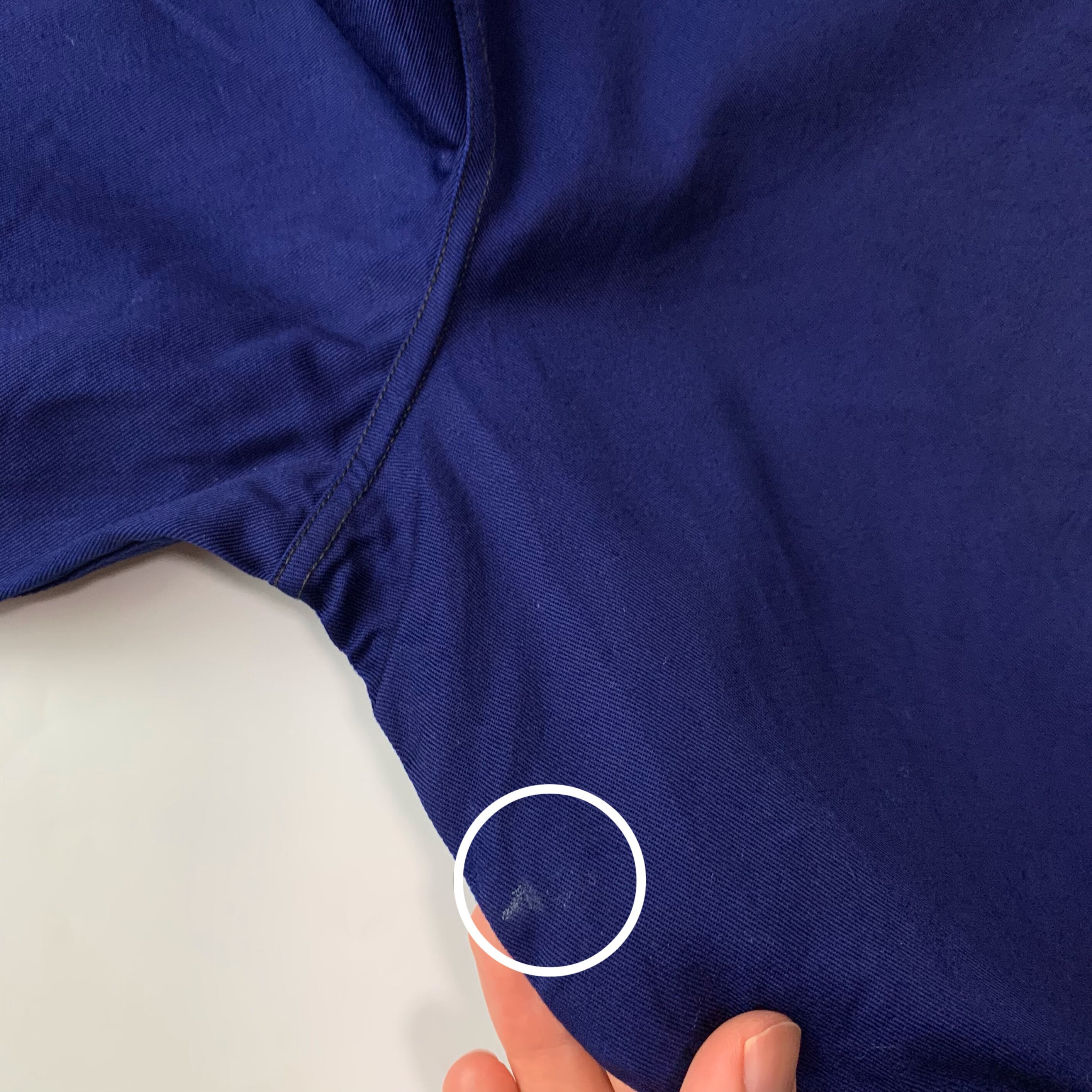 オイルのようなシミが所々にございます。実際に仕事の時に着ていて付いたものなのでしょうか。