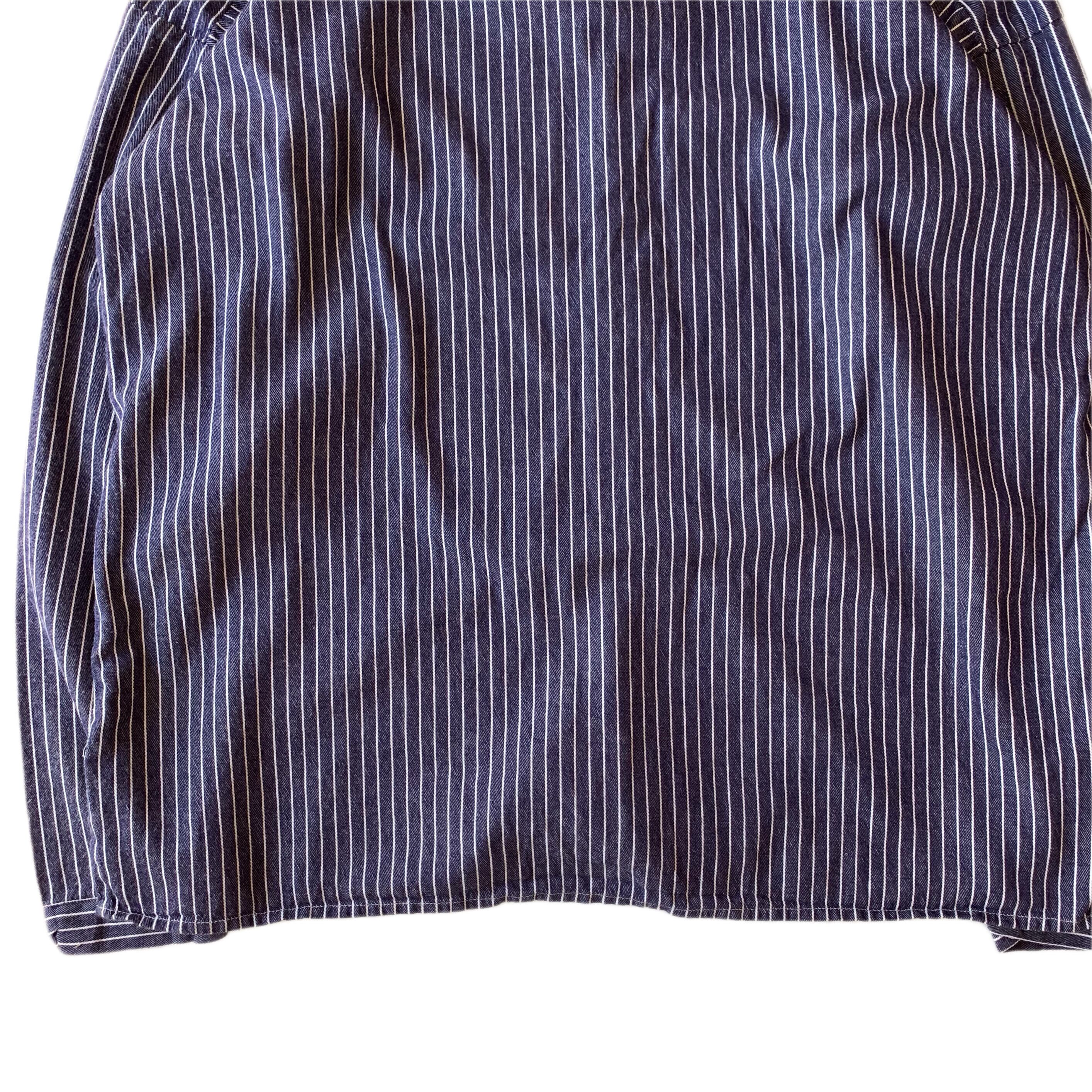 実寸は3XL-4XL程度あるかと思います。小さめが多いフィッシャーマンシャツでこの大きなサイズは珍しいかと思います。女性の方でしたらワンピースのような着こなし方もできそうです。