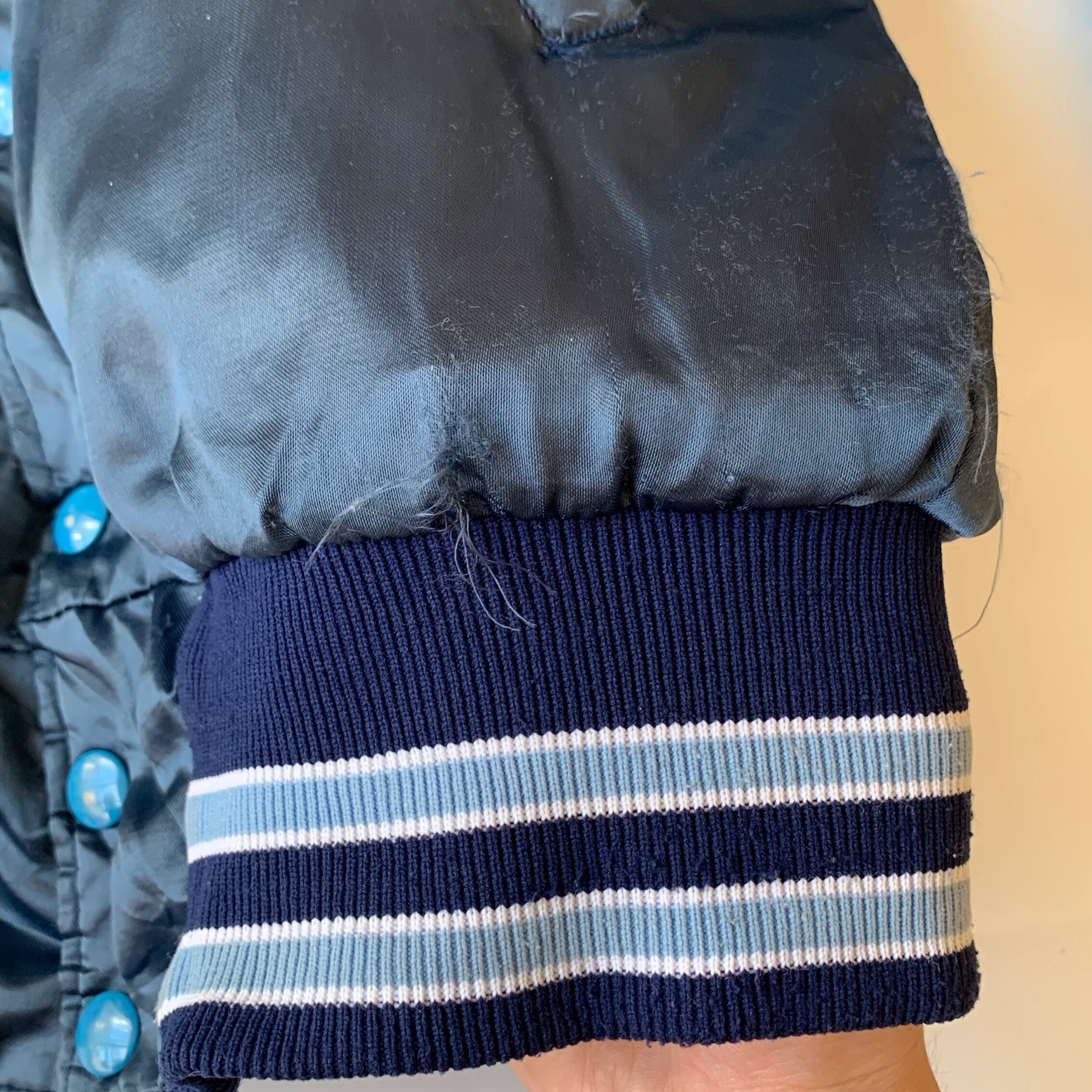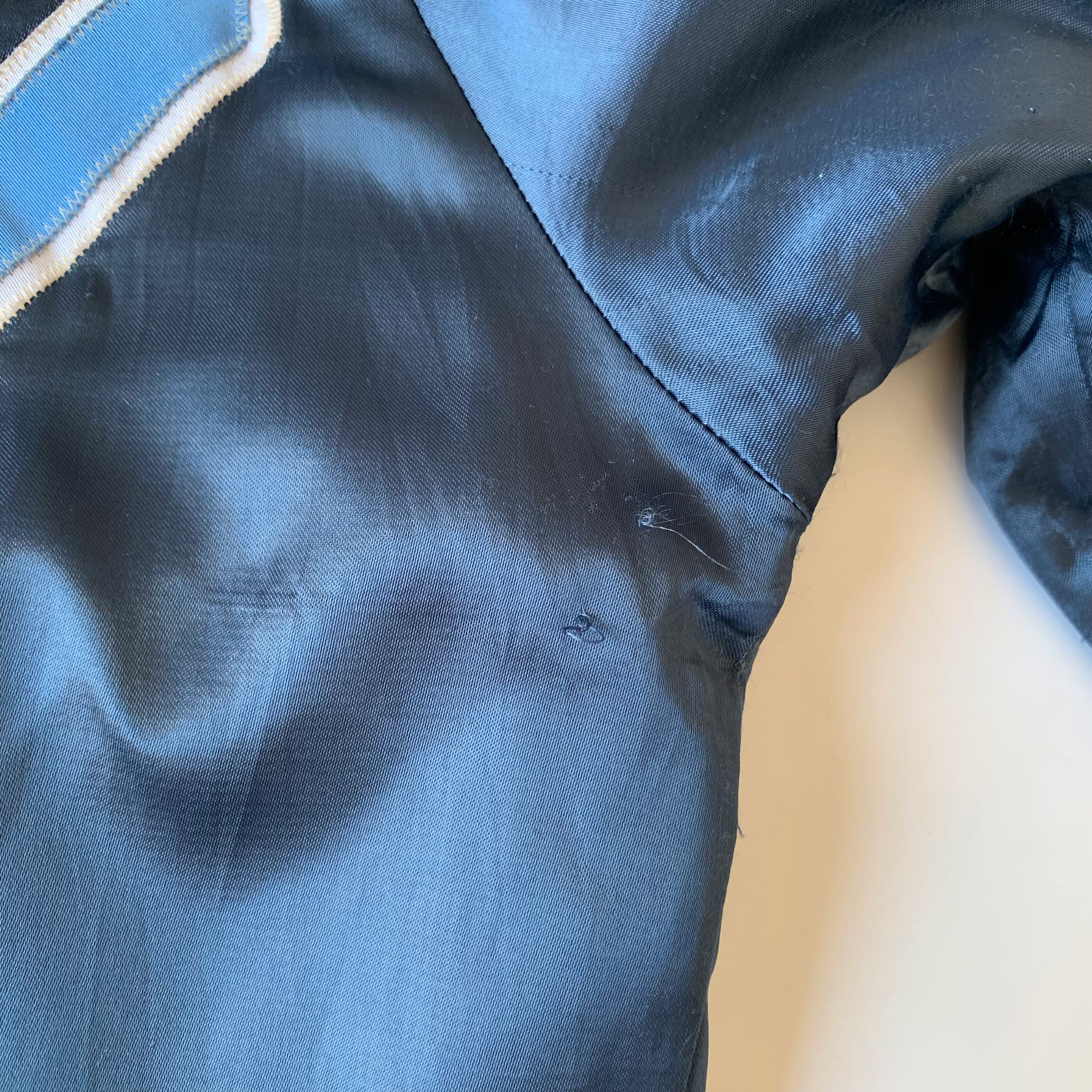 派手な配色が多いナイロンスタジャンの中でも、こちらは水色ベースの使いやすい逸品です。
