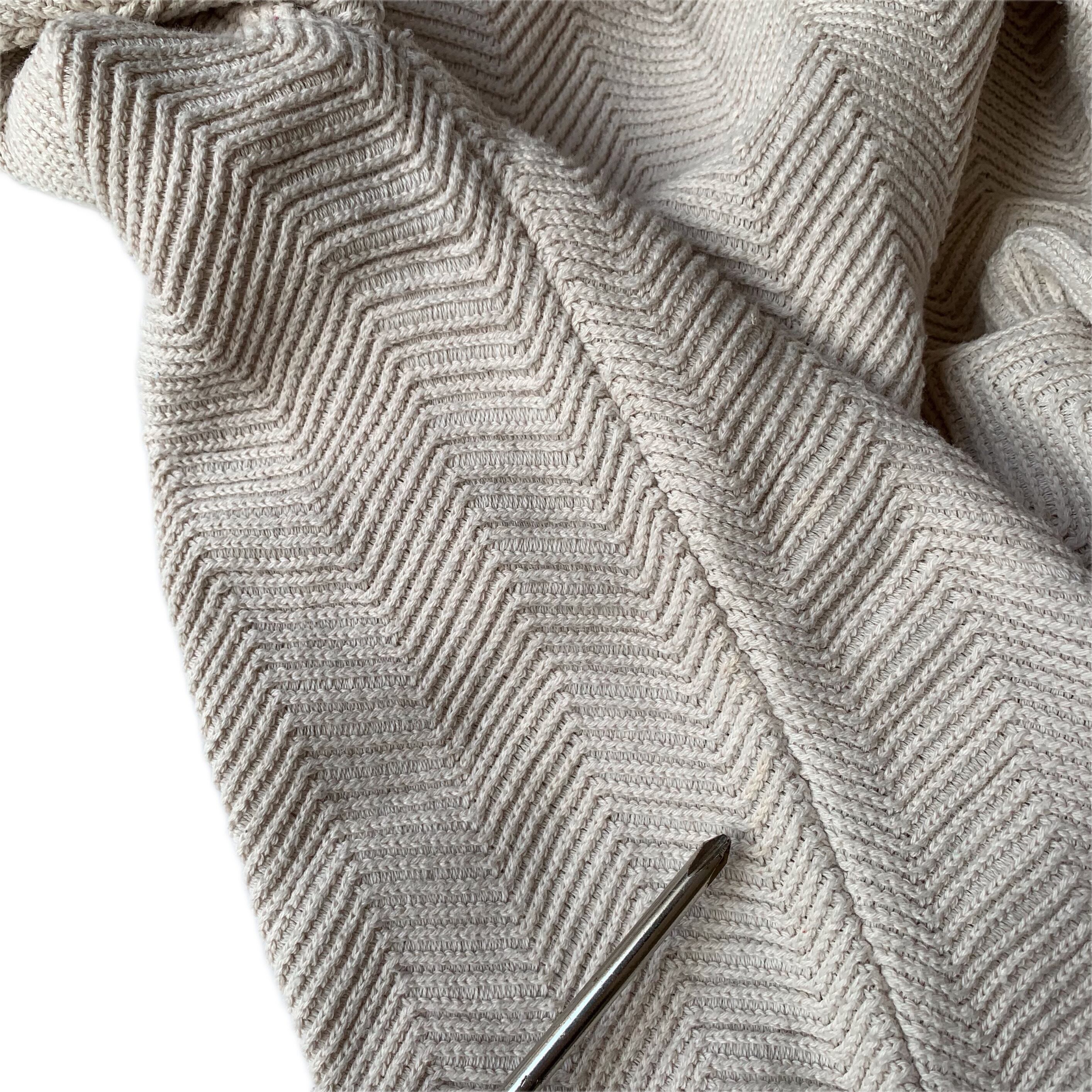 シンプルなデザインながら、編み方など手の込んだ作りの1枚です。