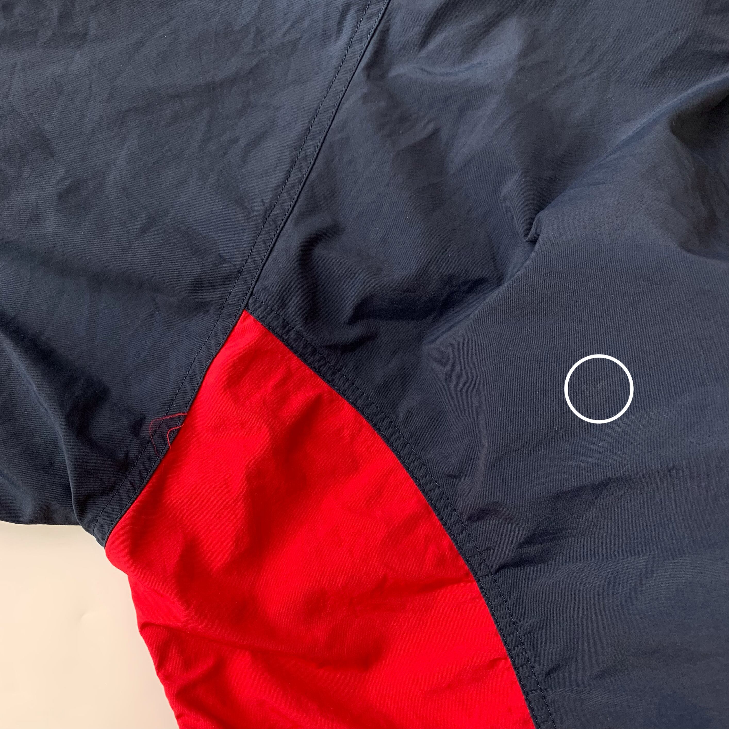 ハーフジップタイプ。ネイビー×レッドのツートーンの配色が特徴的です。