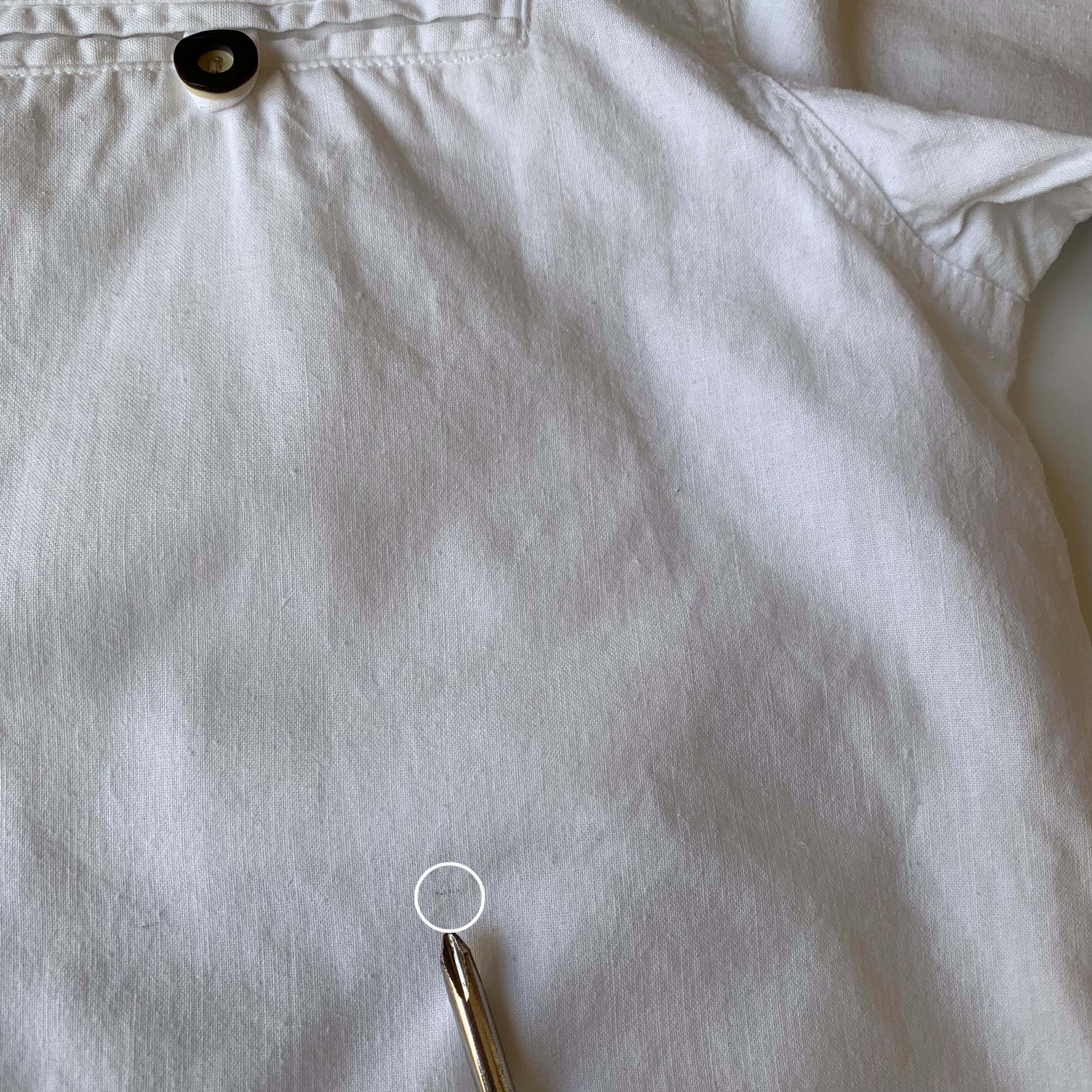 ・後身頃 中央部から裾上にかけて薄いシミが数点ございます。