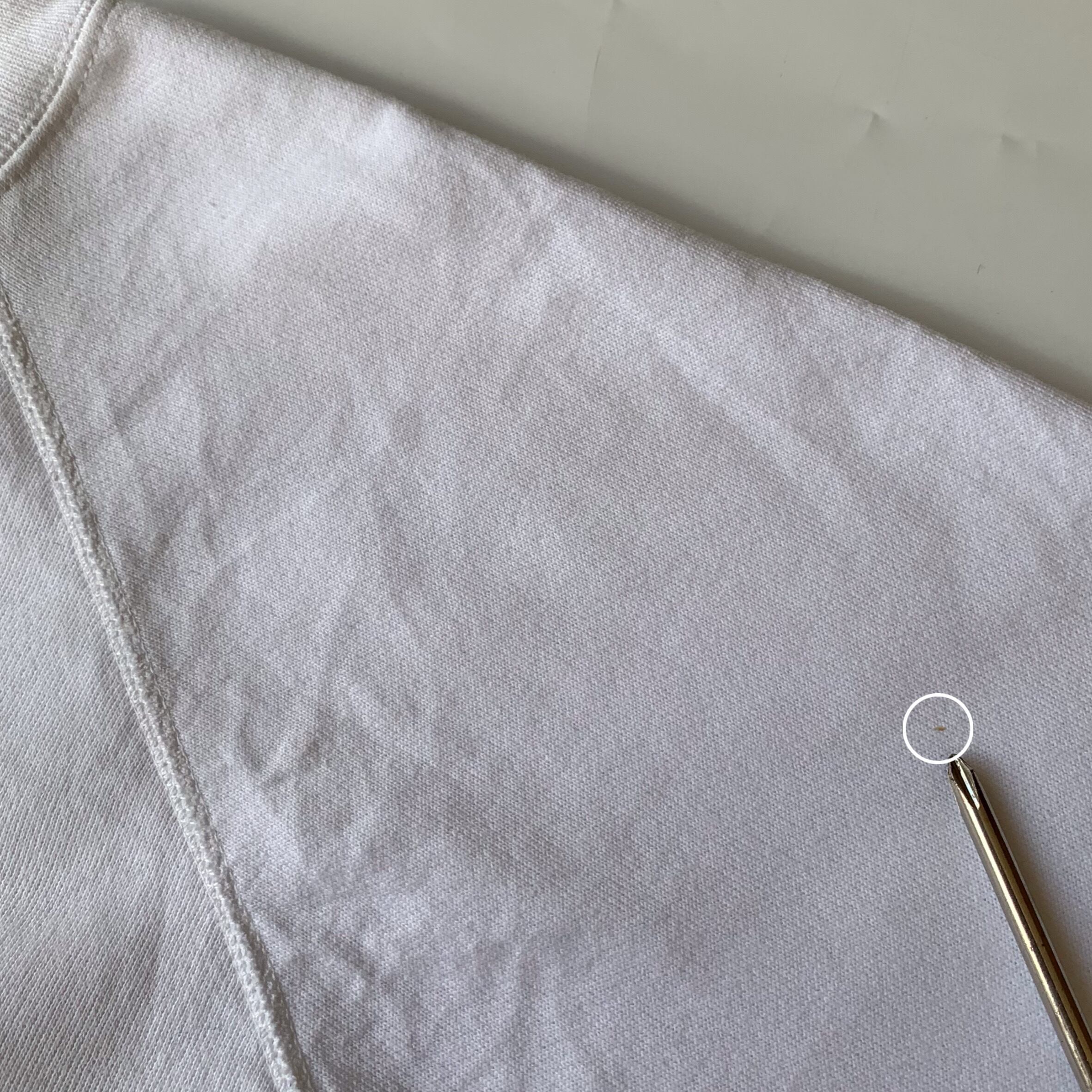 ・プリント付近、前身頃 左袖、後身頃 中央部など所々にシミがございます。