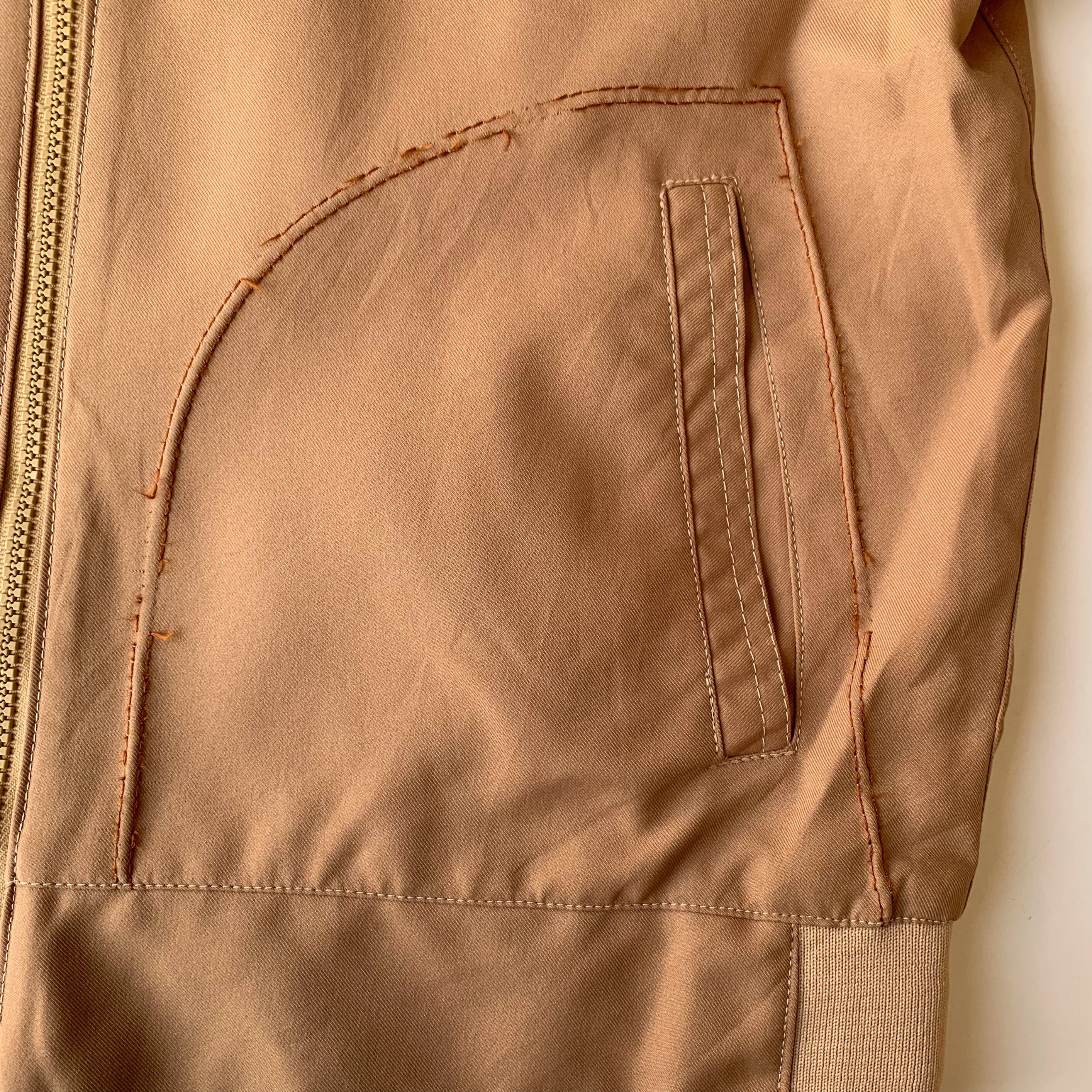 ファスナー付近 薄らとピンクっぽいシミがございます。