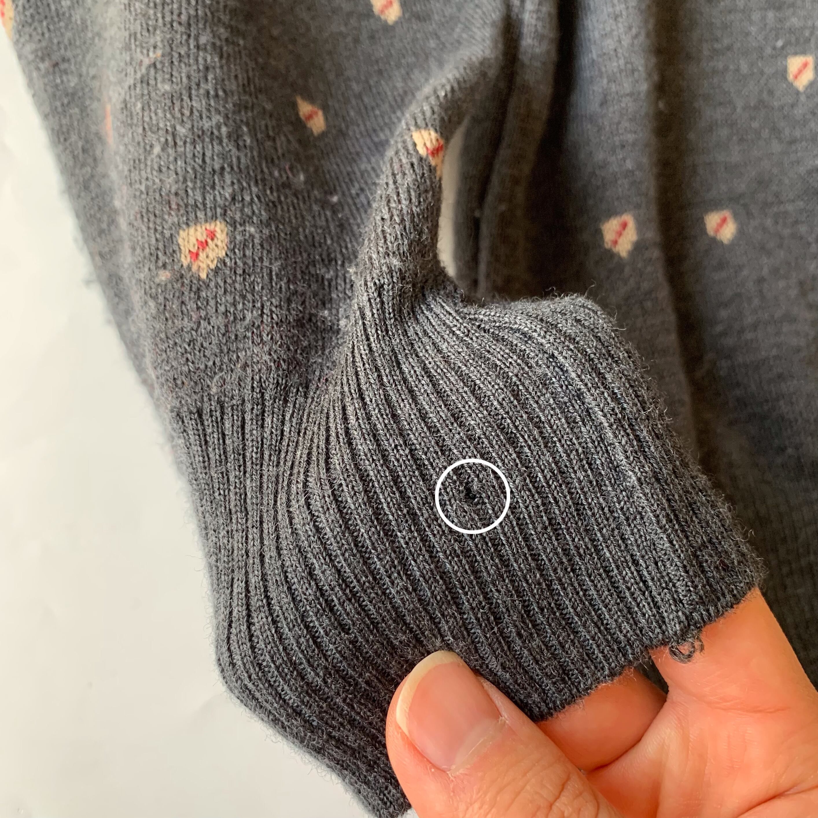 ・前身頃 裾リブ、両袖リブに小穴がございます。