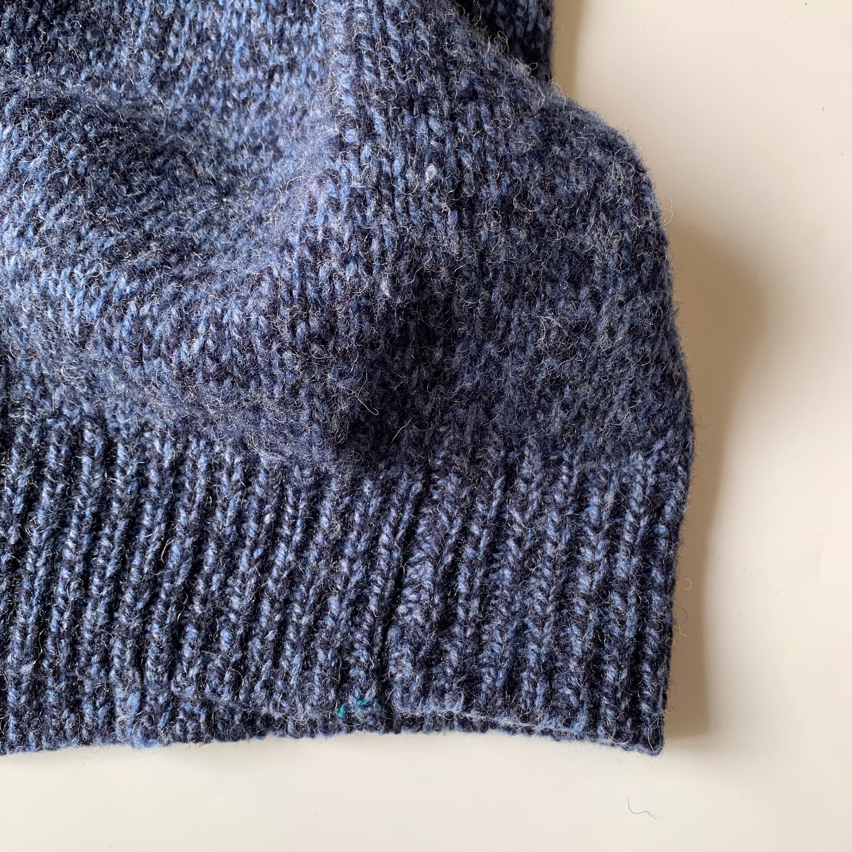 ダークネイビー×ブルーのウールが織り成す色味もどこか複雑で美しいです。