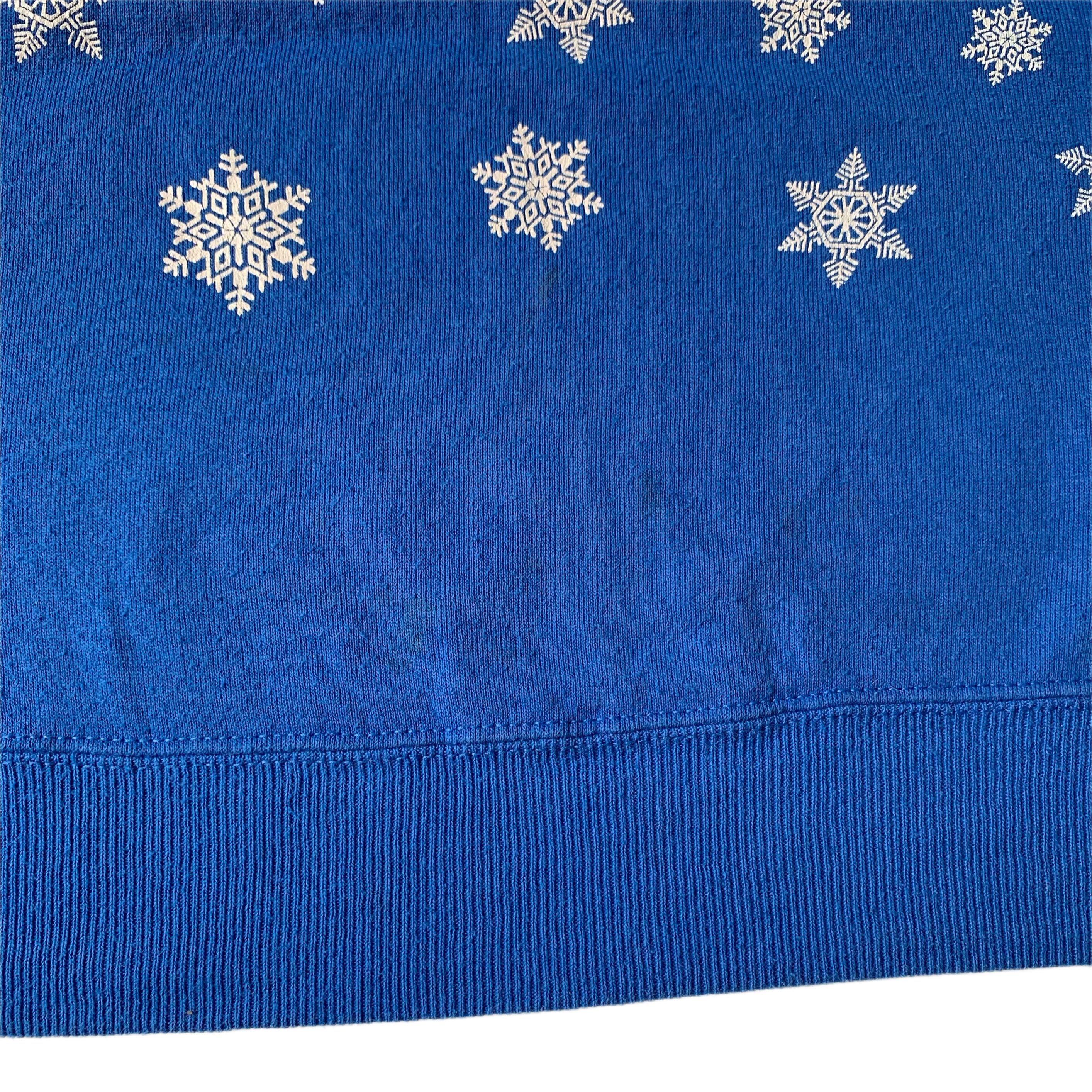 雪の結晶と宙に舞っているような猫が描かれた可愛らしいデザイン。