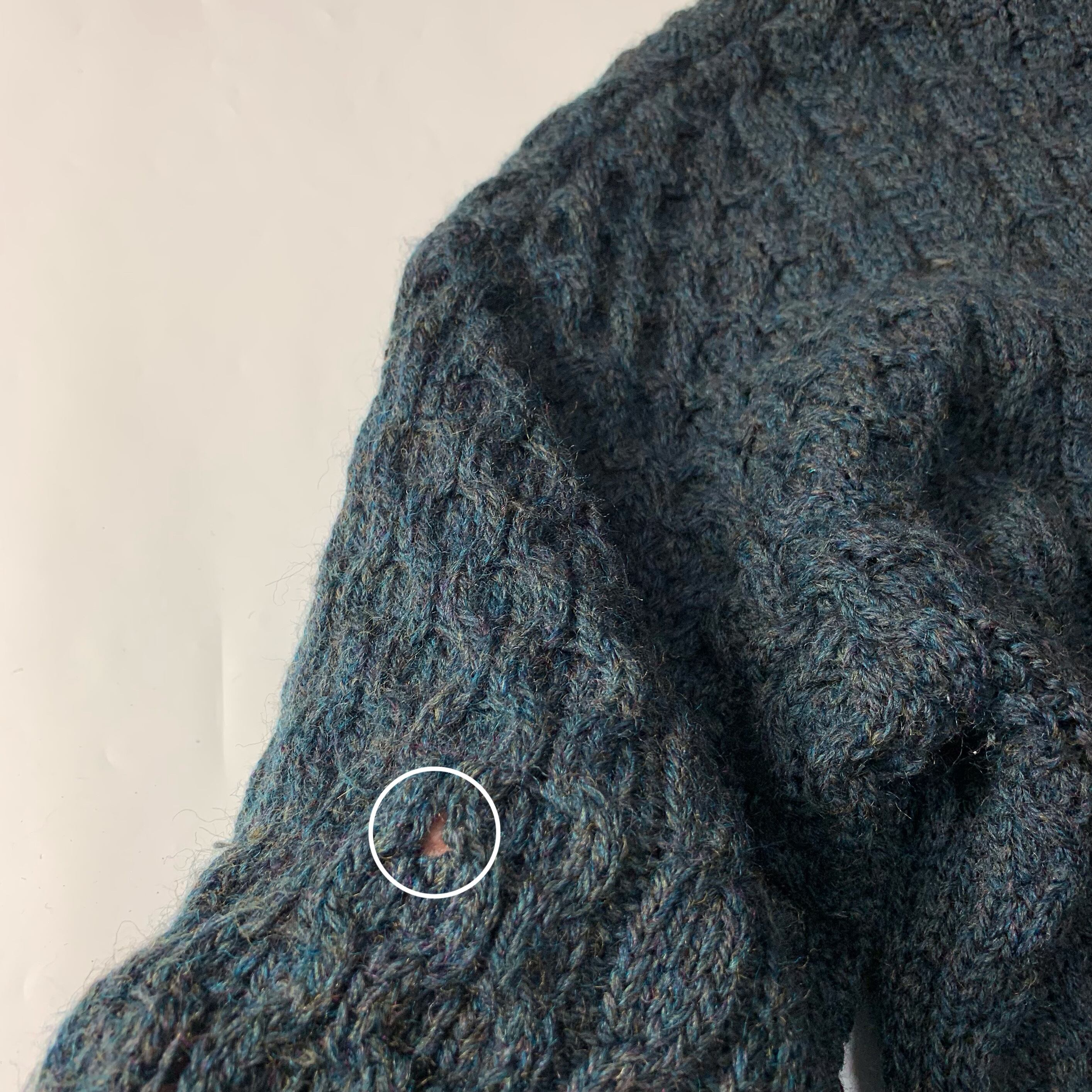 ・後身頃 左袖に小穴がございます。