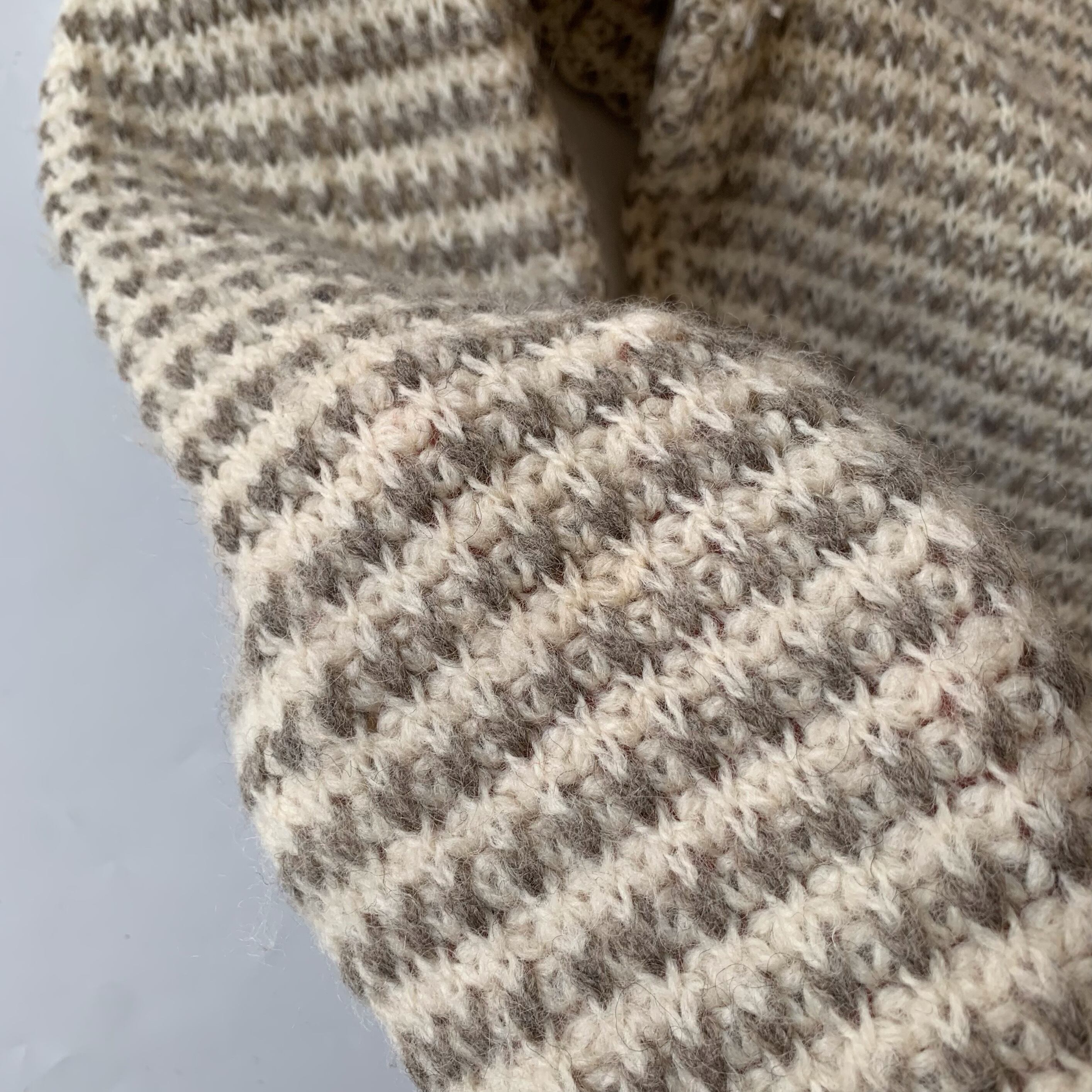 ウールとナイロンの混紡素材で編み込まれたしっかりとした肉厚感で、保温性にも優れているので寒い季節に大活躍です。