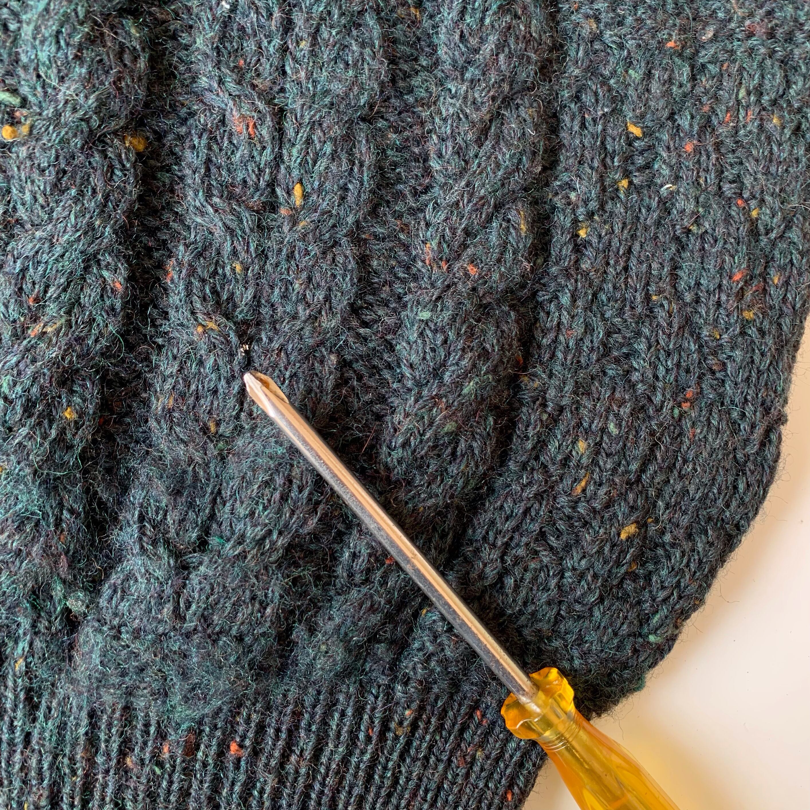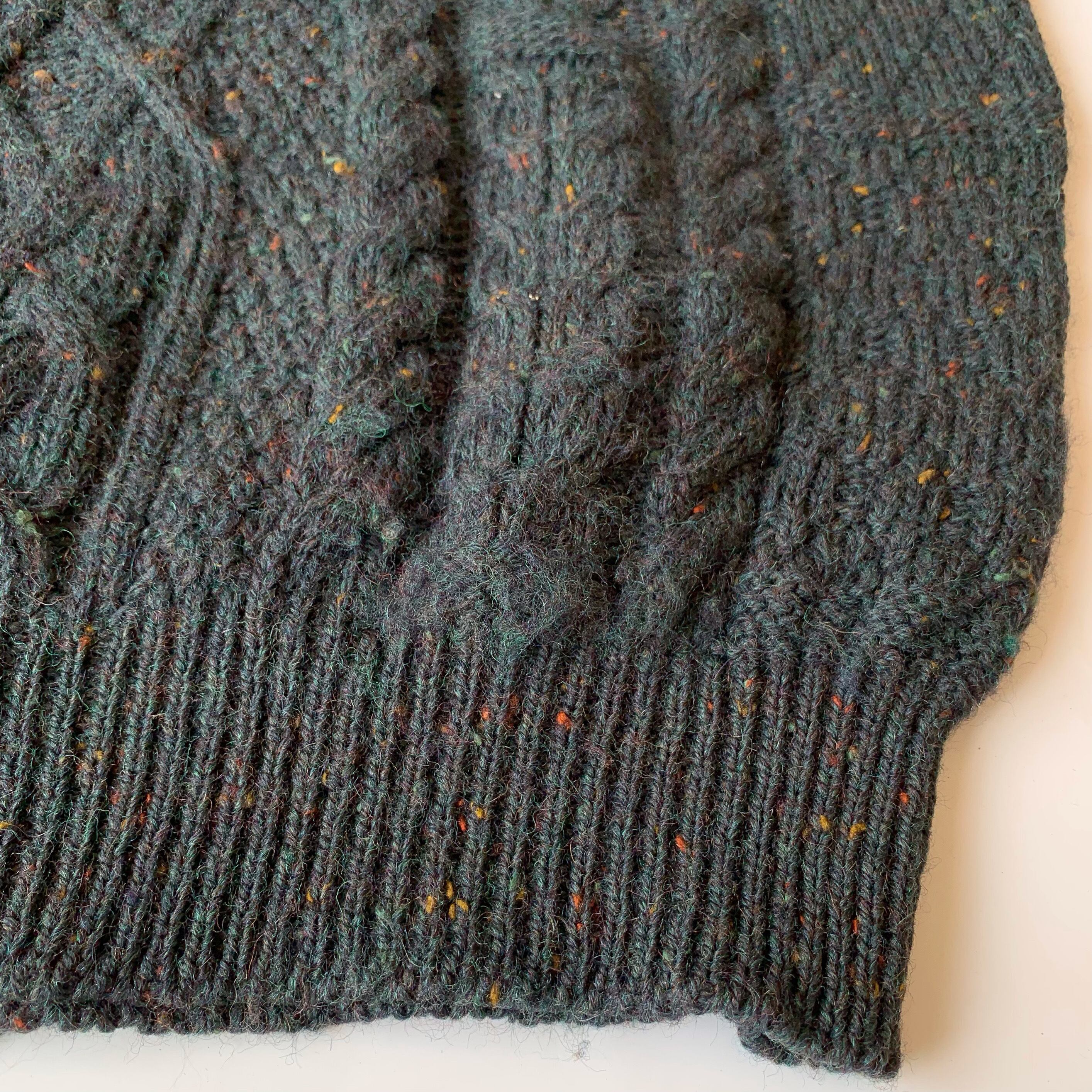 今回ご案内のニットは、ダークグリーン系ウールにネップが飛ぶとても魅力的な色味です。