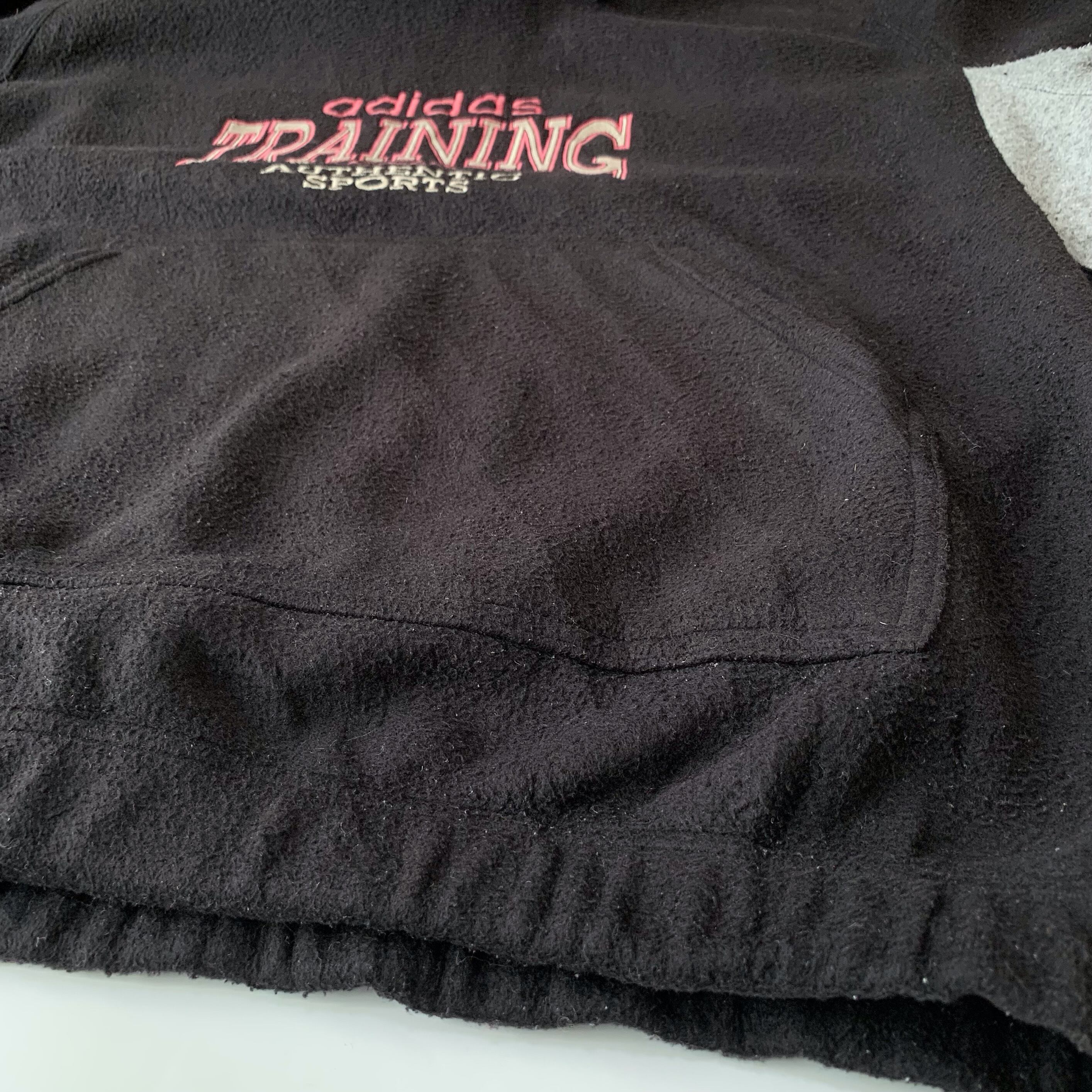 カンガルーポケット。右裾にはジッパー開閉のスリット、ドローコードがついております。