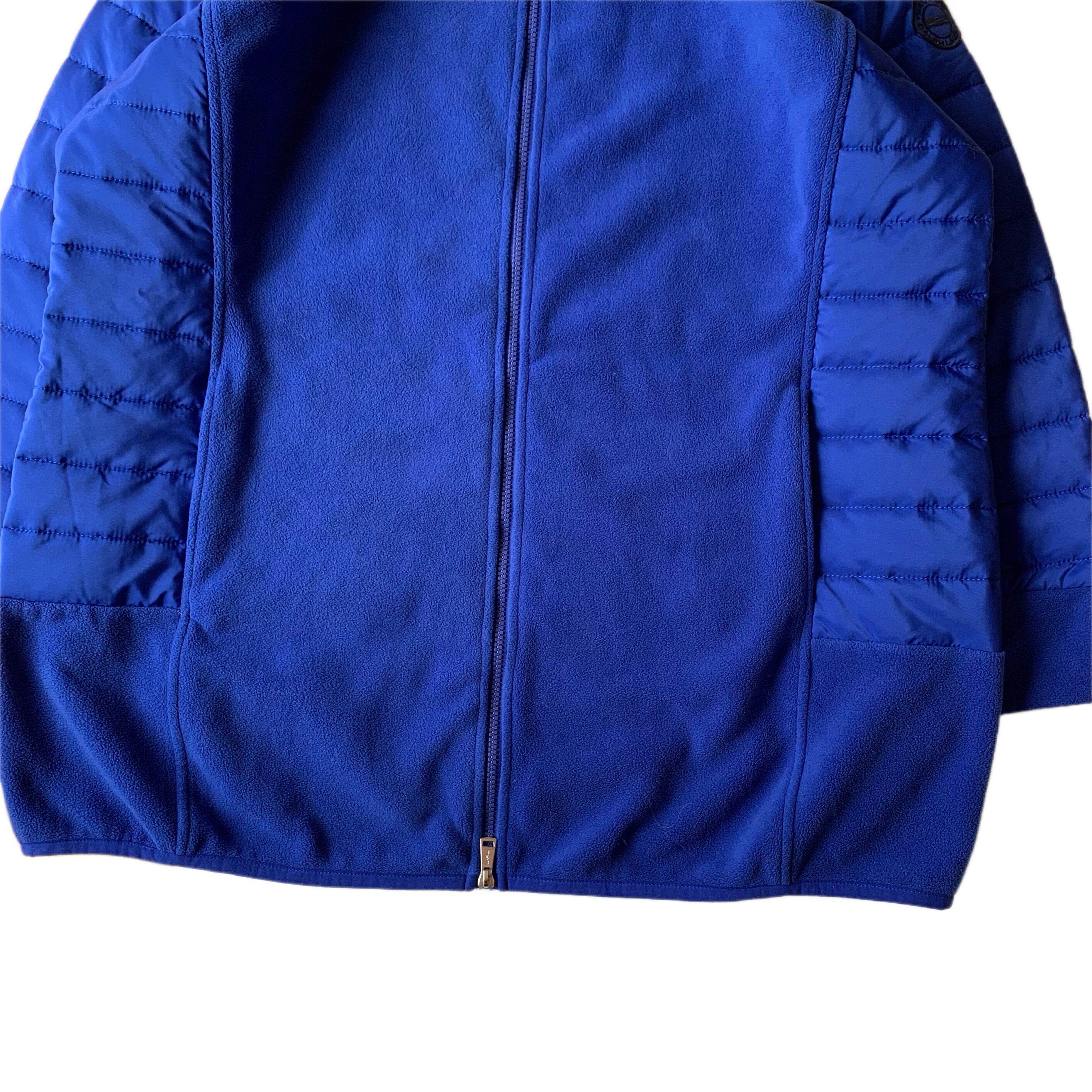 フリース×キルティングの切り替えが効いたジャケット。青1色ですが、切り替えによってモードな雰囲気がございます。