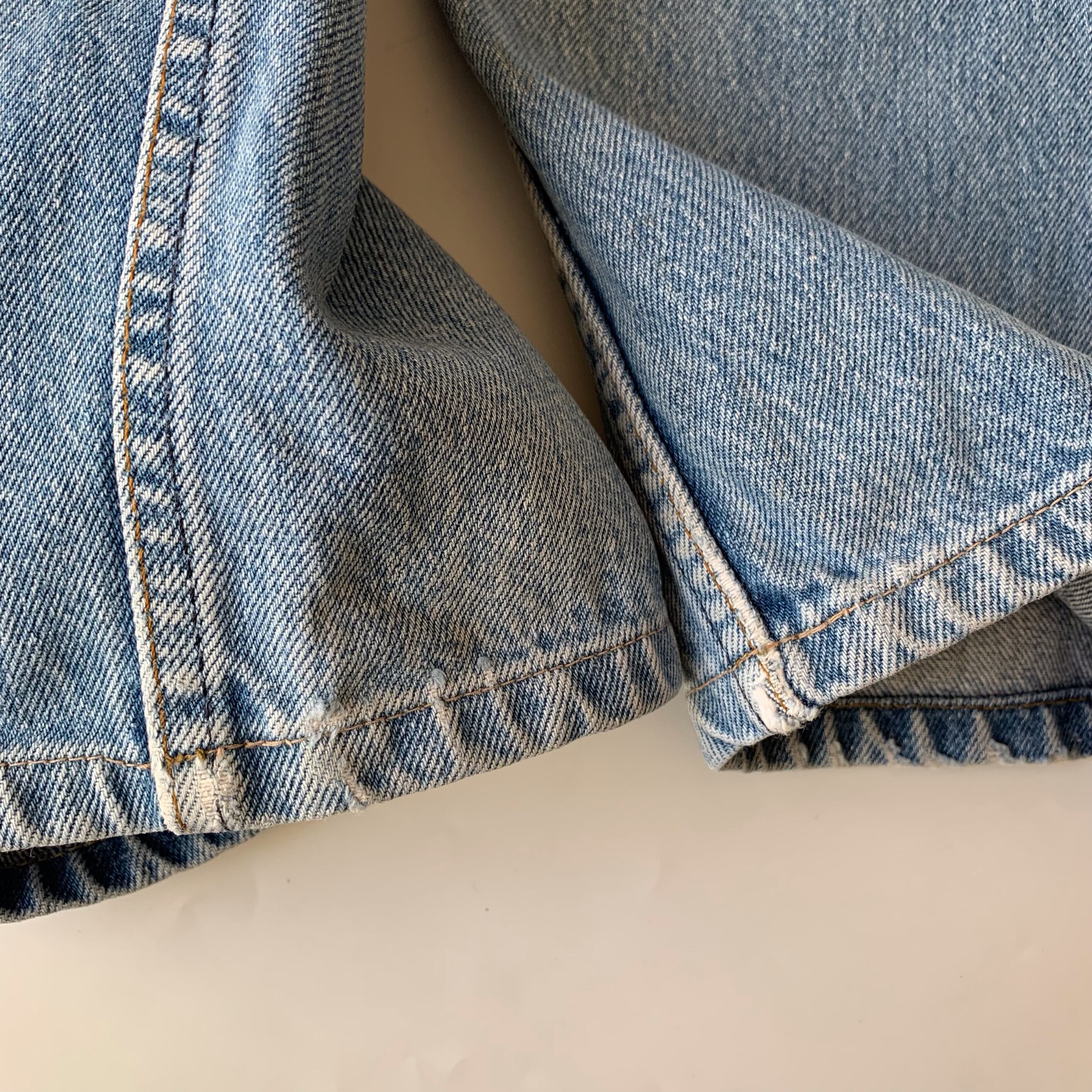 丈つめや縮みもあってか実寸はW29L30程度となっております。