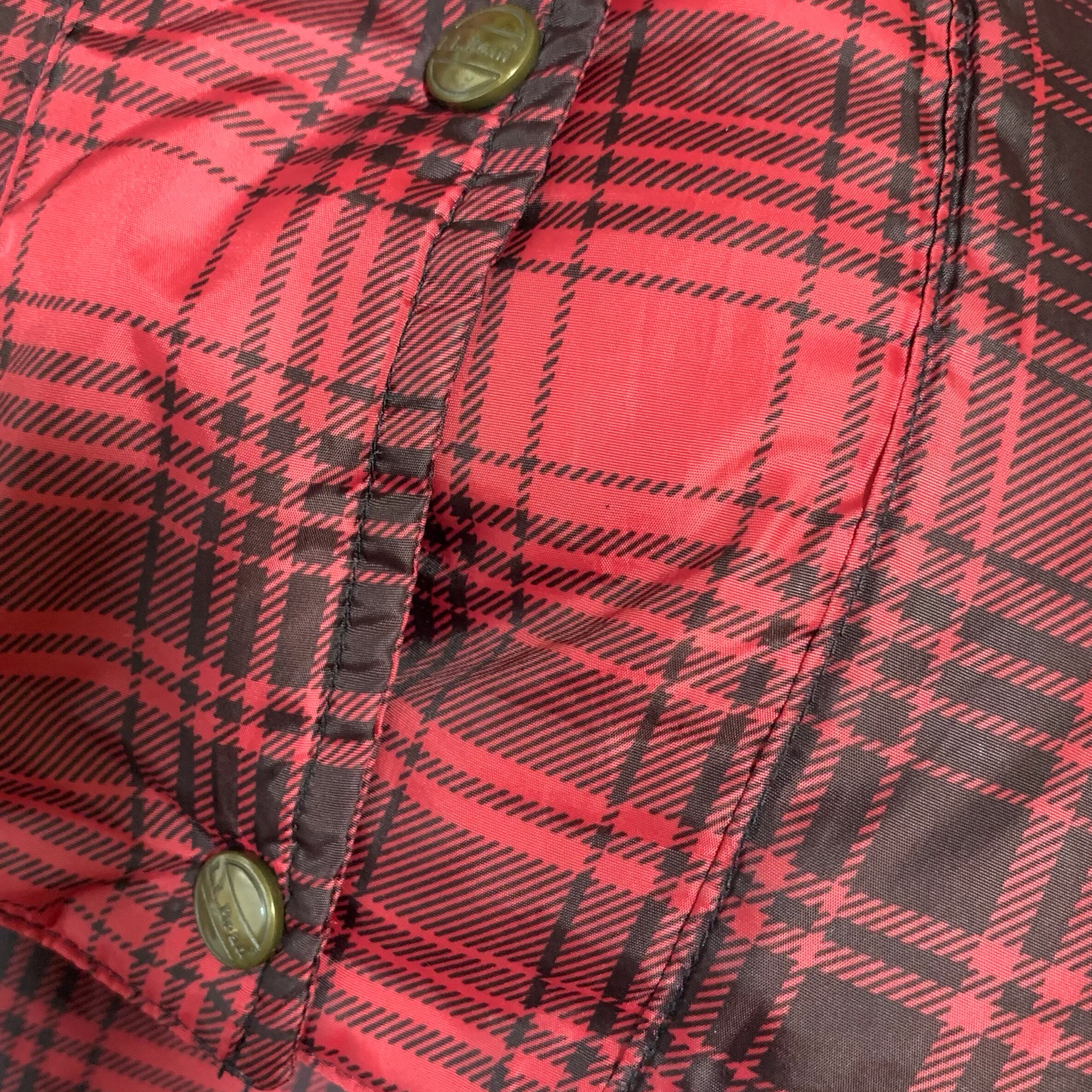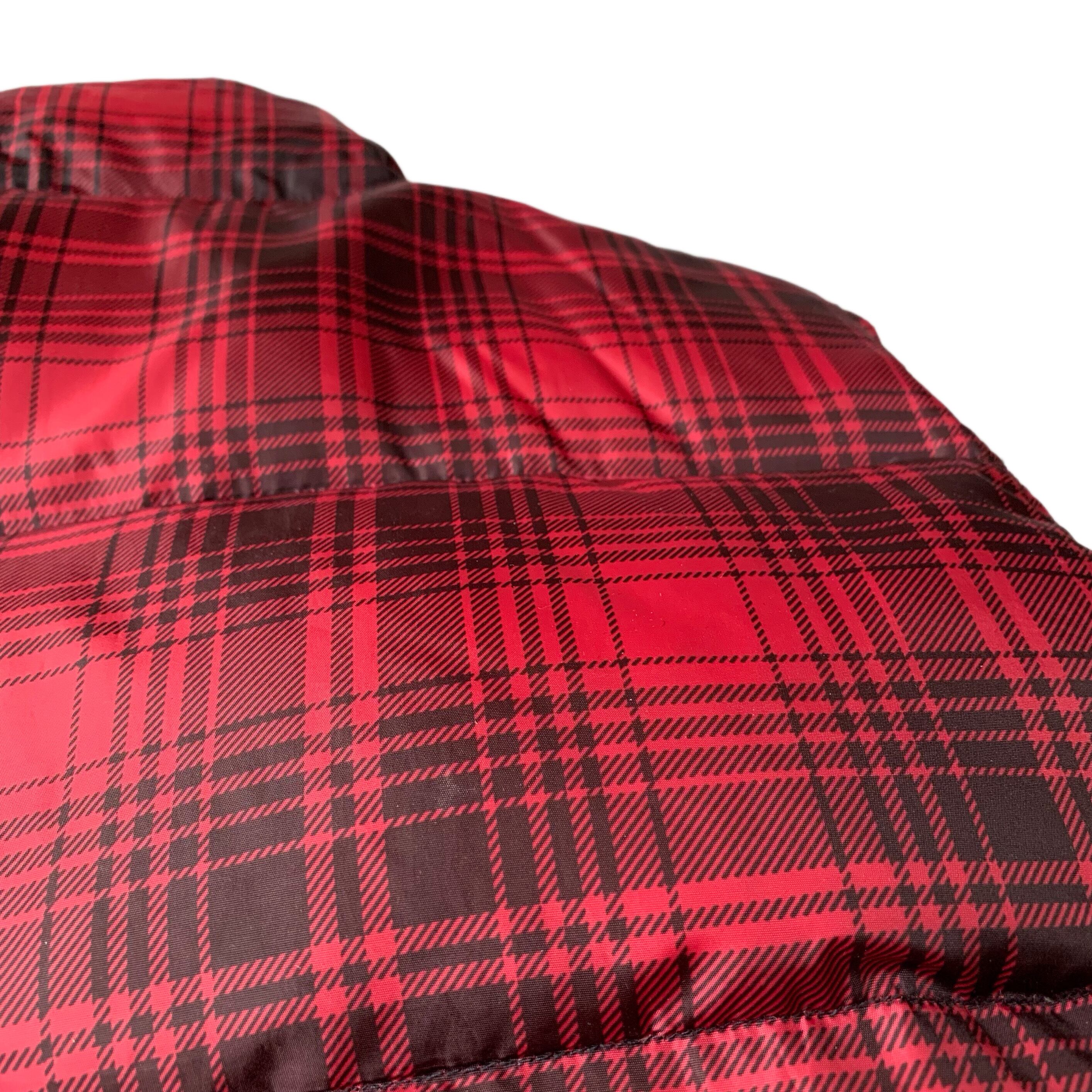 しっかり詰まったグースダウン、ブラック×レッドの良いチェック柄。
