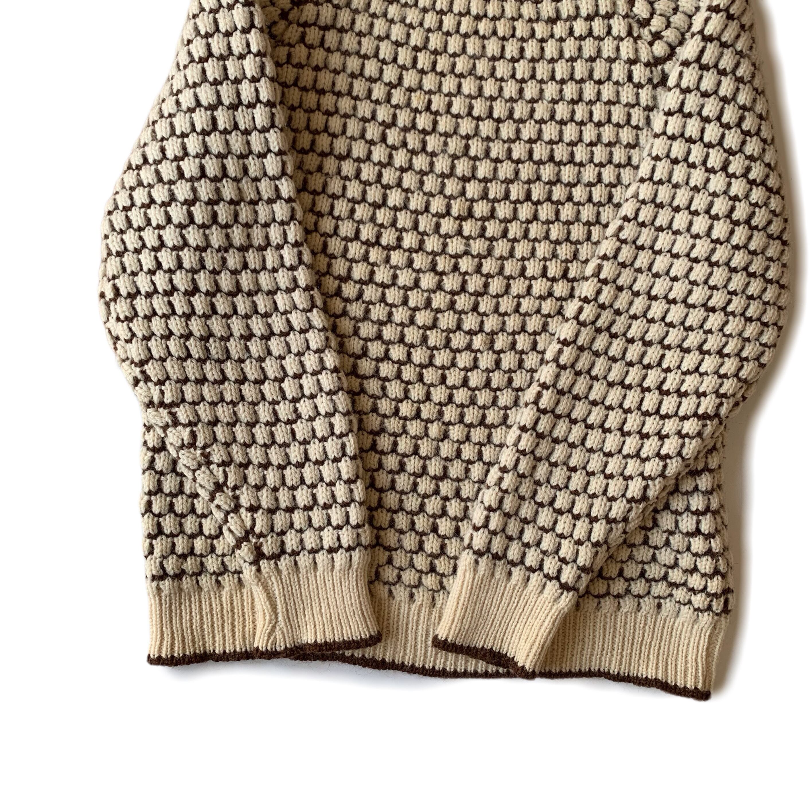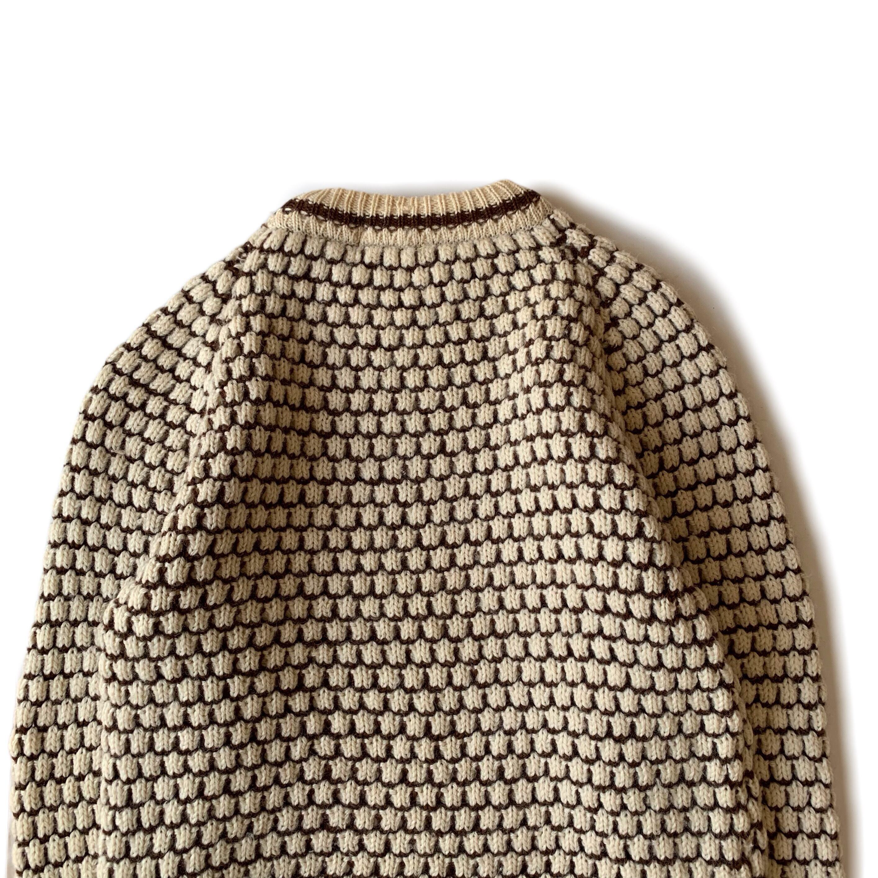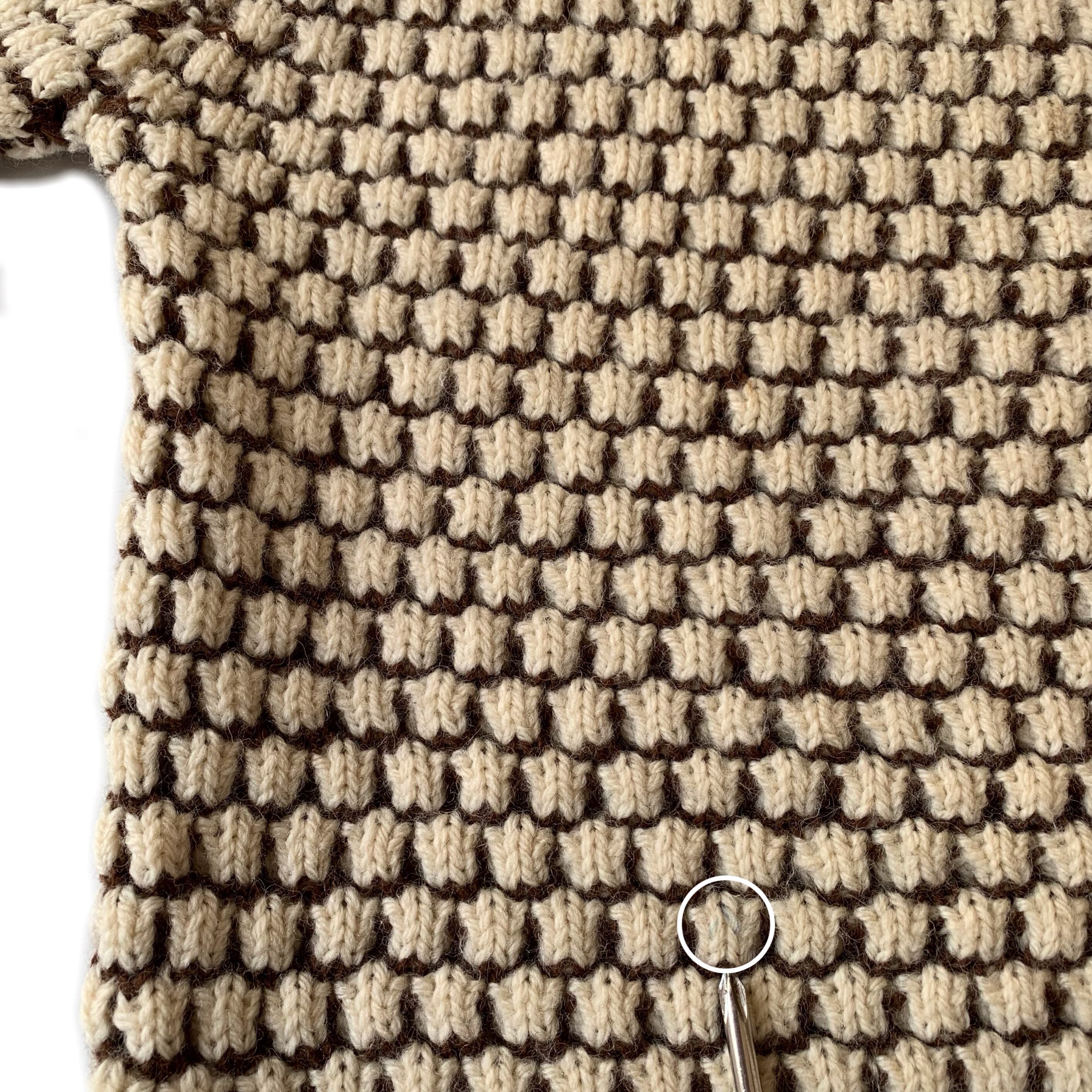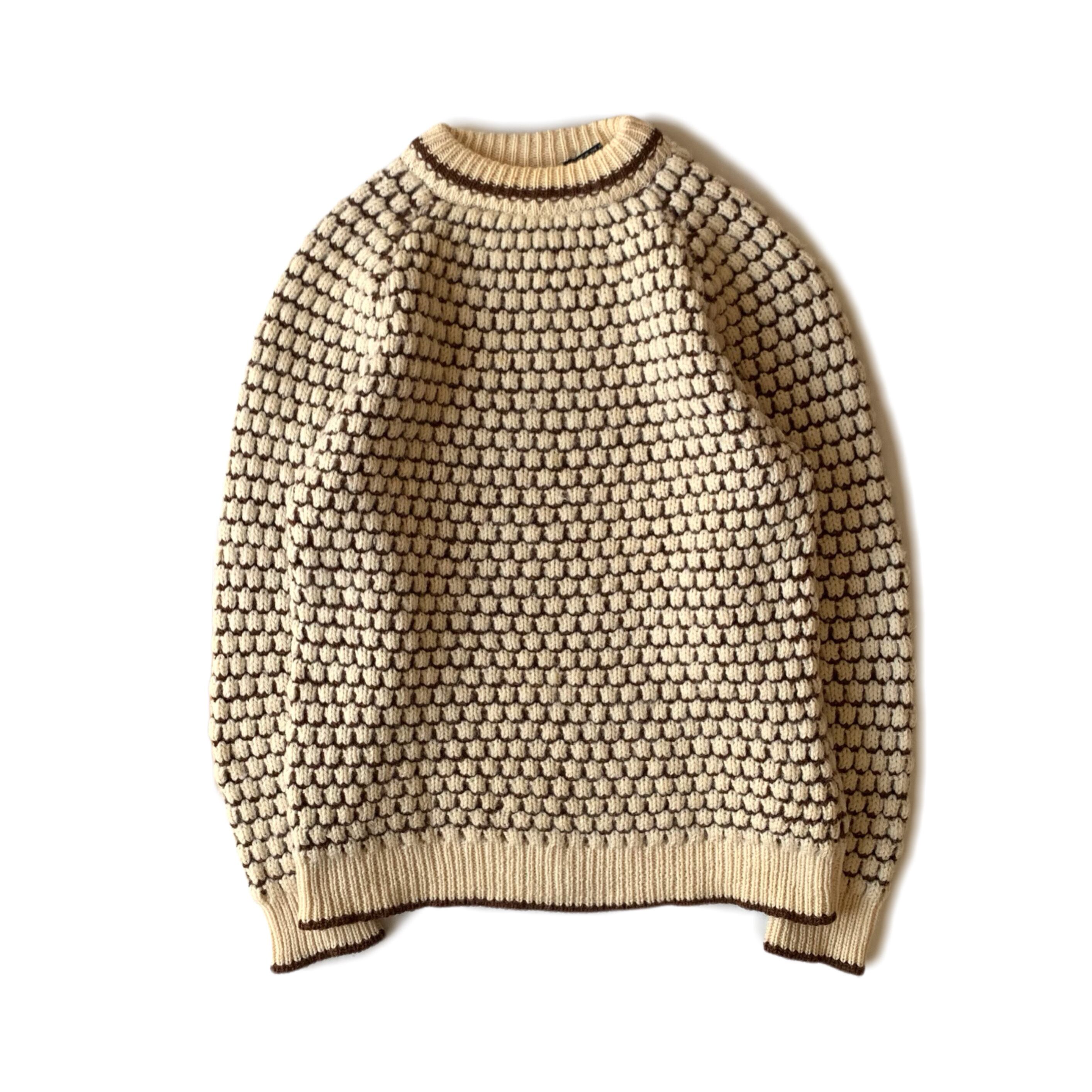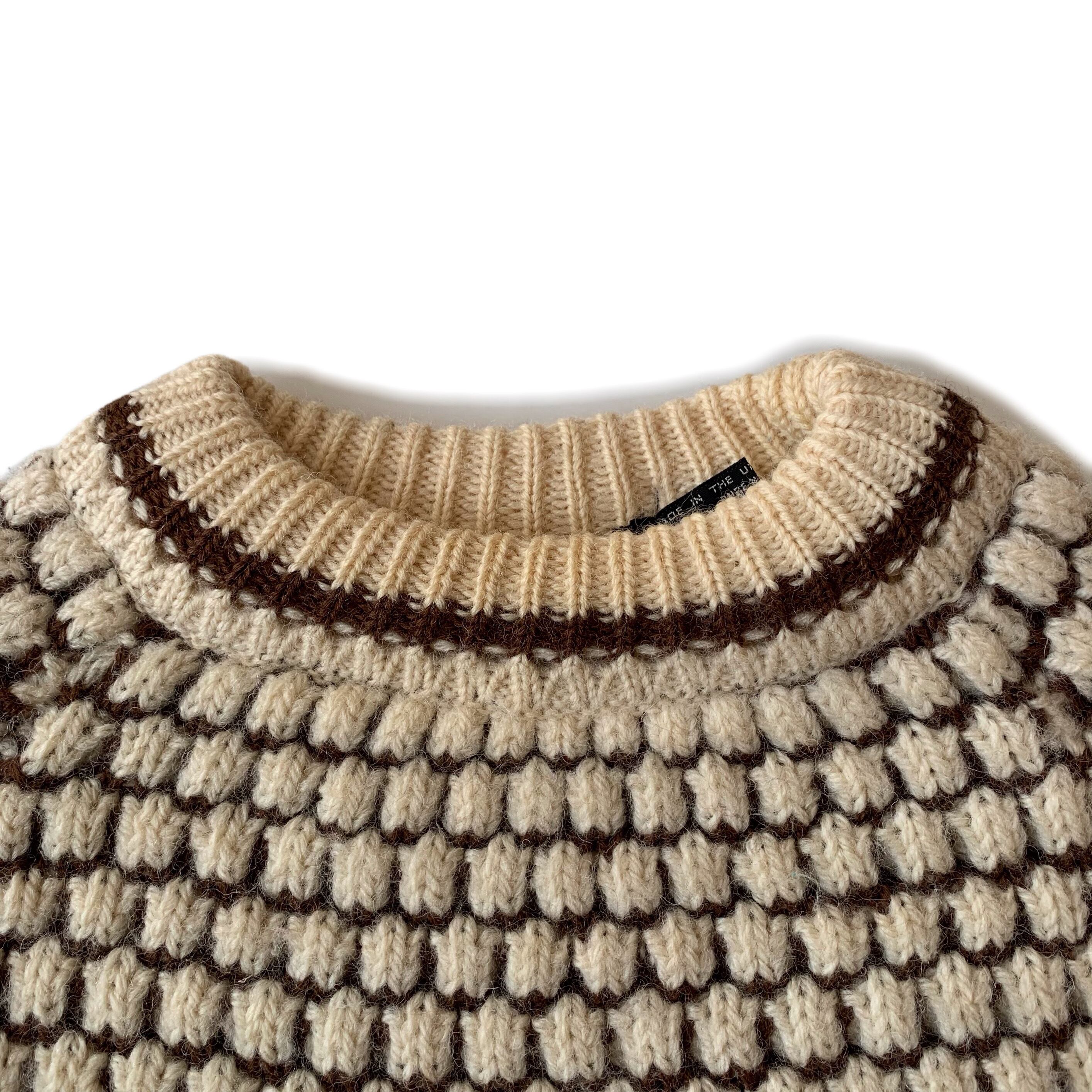 立体的なポップコーン編みが魅力的な一枚。淡いベージュカラーの温かみのあるカラーリング。