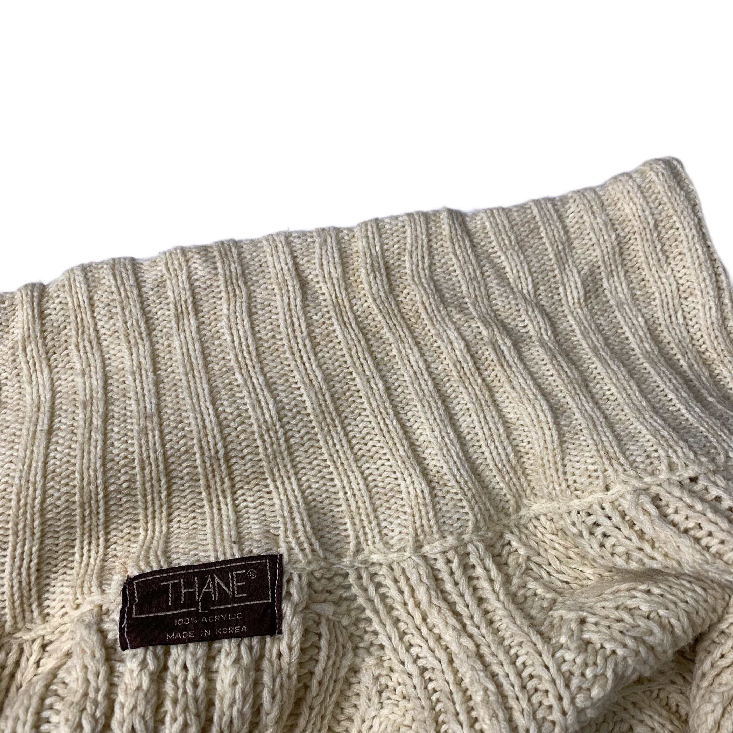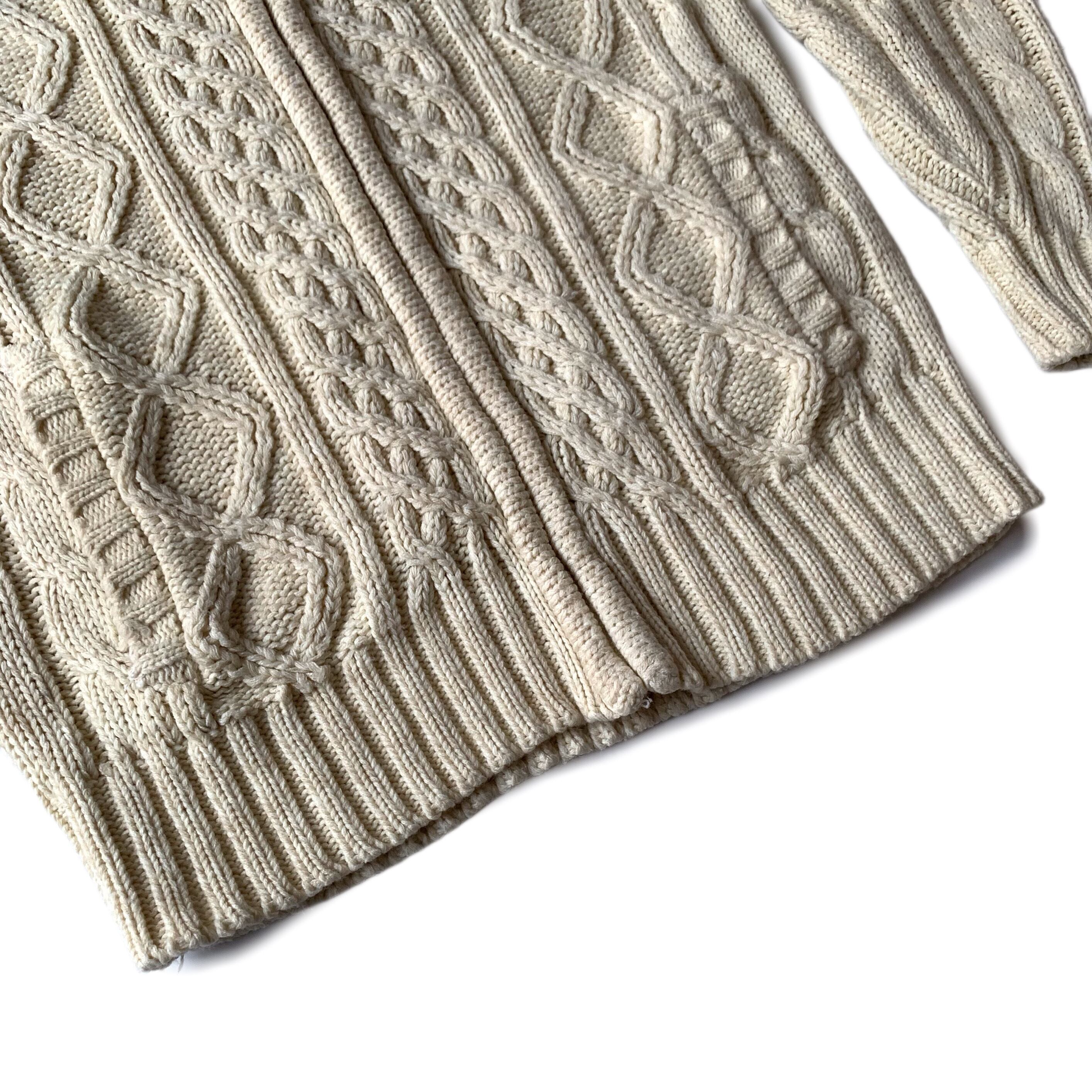 裾に連なった編み、首まですっぽり隠れるハイネックが特徴的。ハンドウォーマーポケットもしっかりございます。