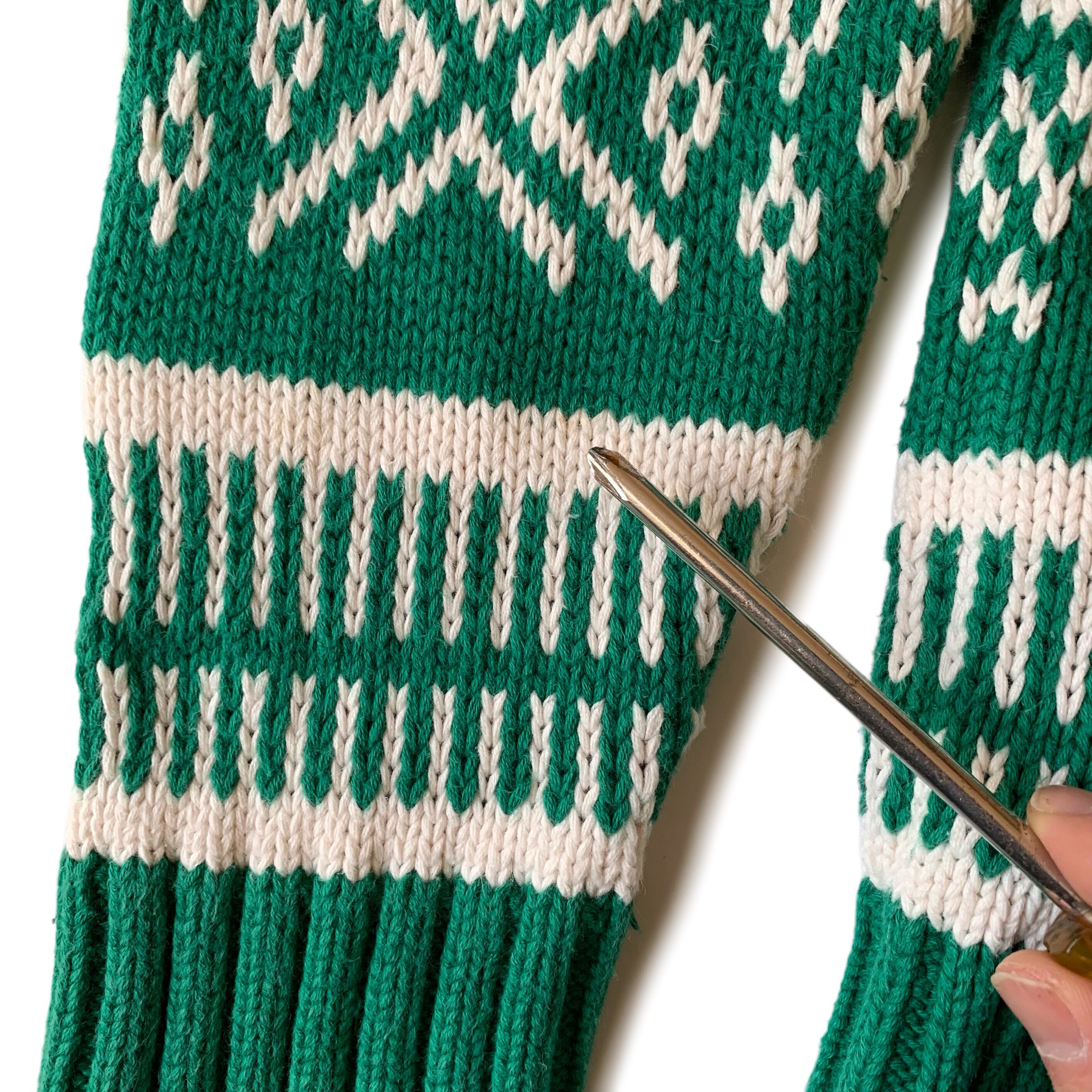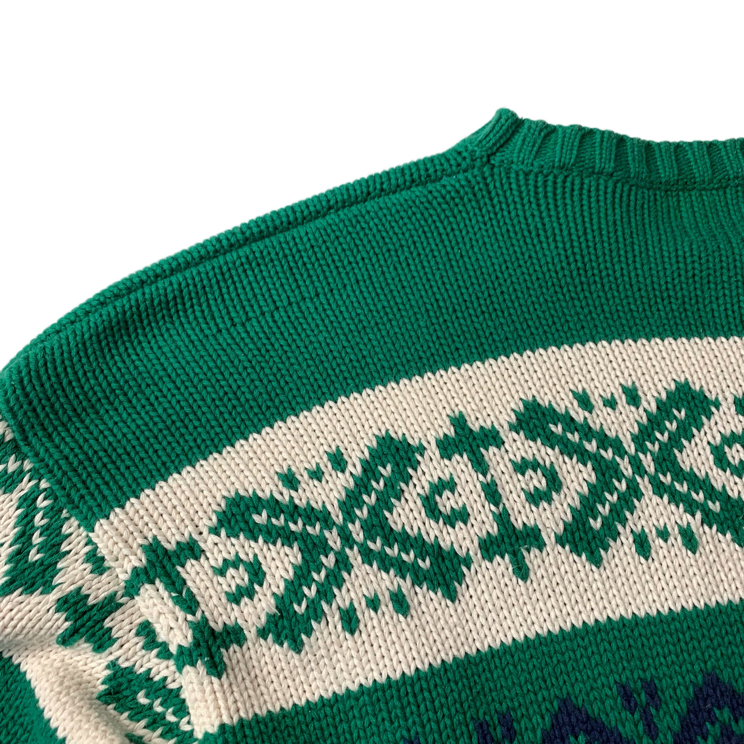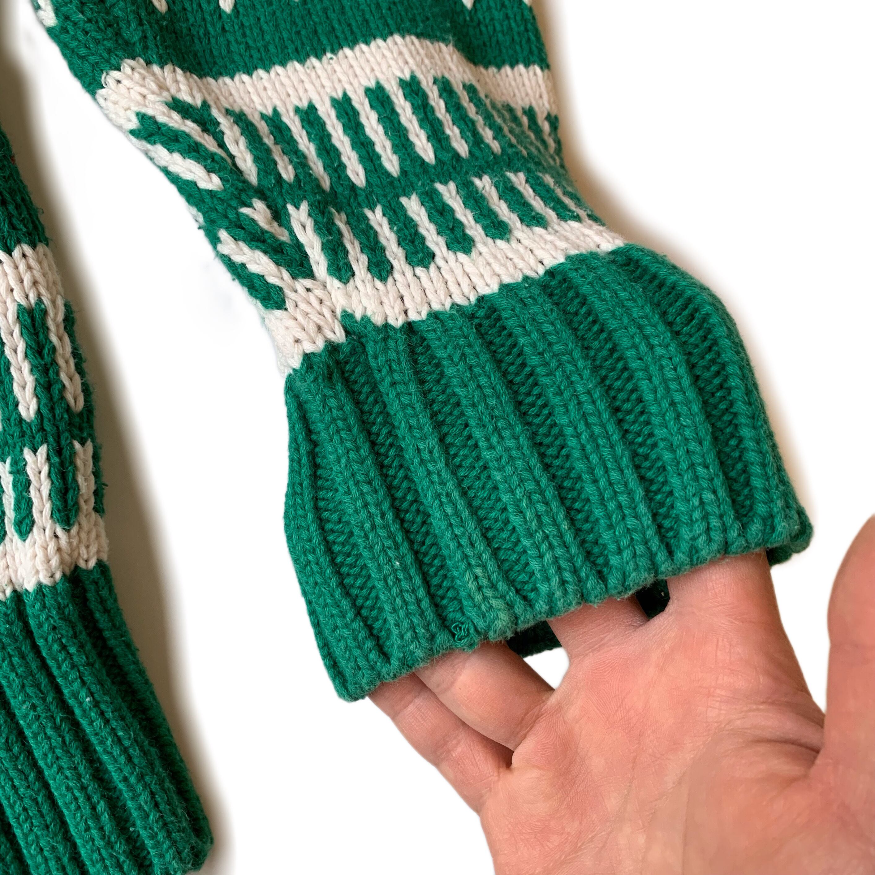 グリーン×ホワイト×ネイビーのノルディック柄。