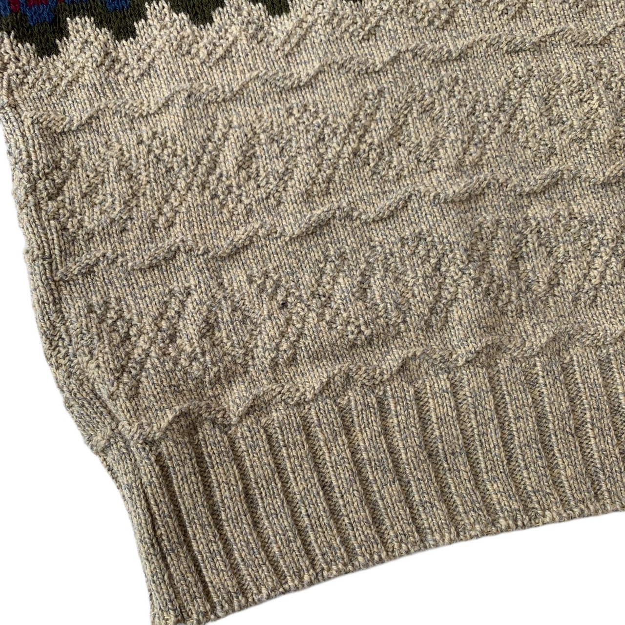 裾、袖先は若干凹凸のある3D 立体編み 非常に凝ったグッドデザイン 。
