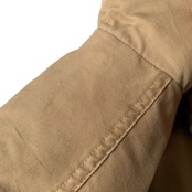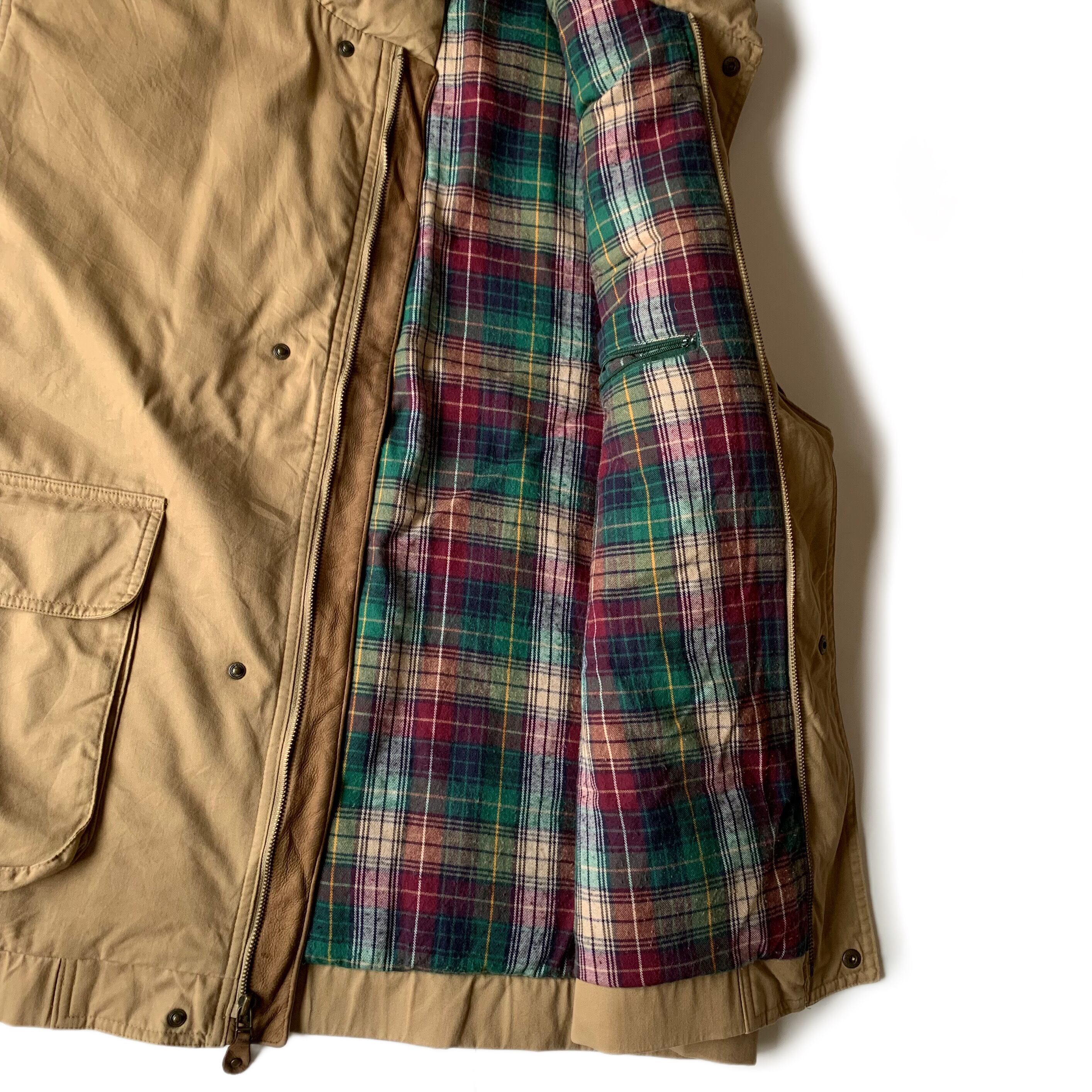コットンシェル、裏地にはチェック柄のフランネル生地。グースダウンを搭載し、防寒性に優れた1枚。