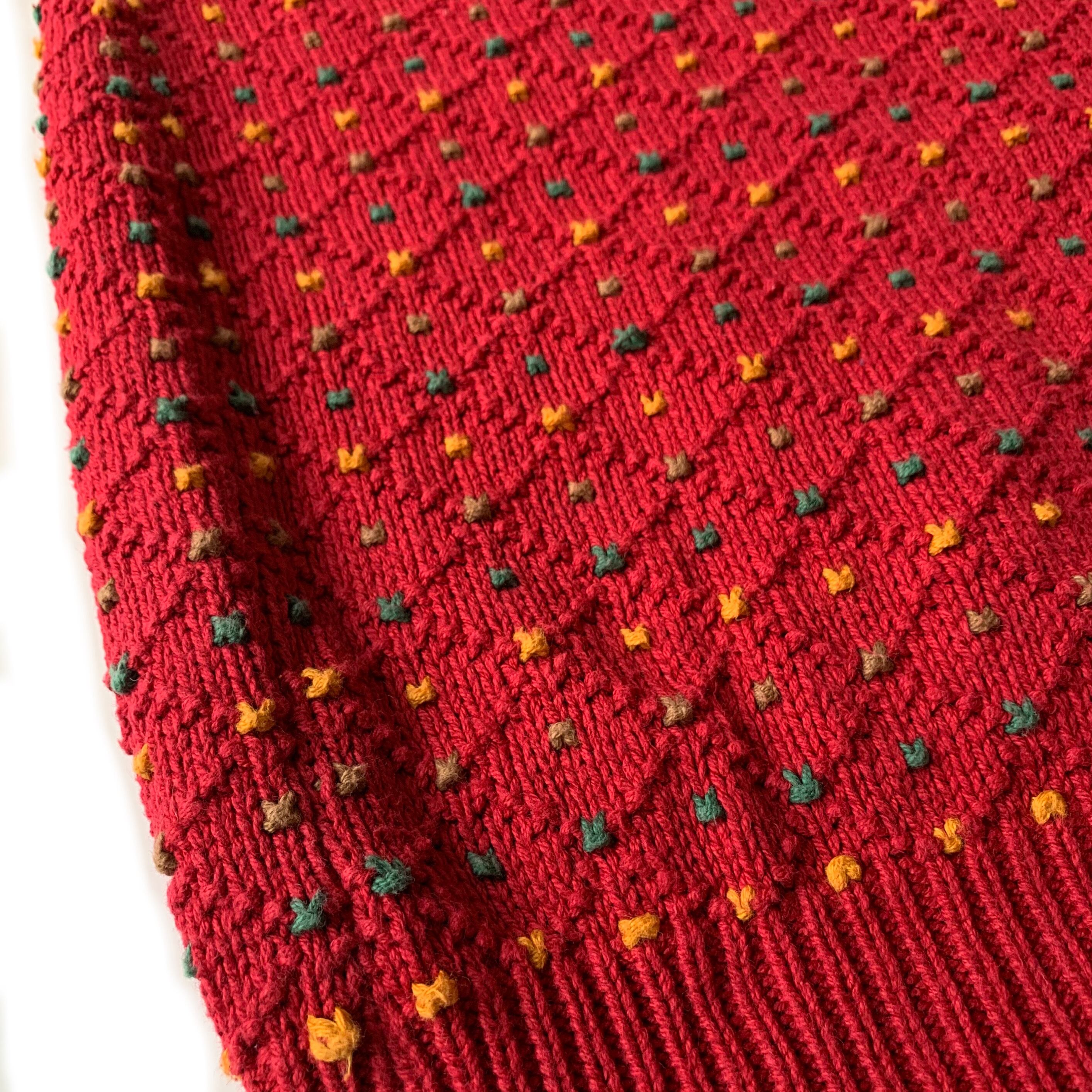 よく見るとダイヤ柄の編みも施されており、非常に手の込んだ逸品です。