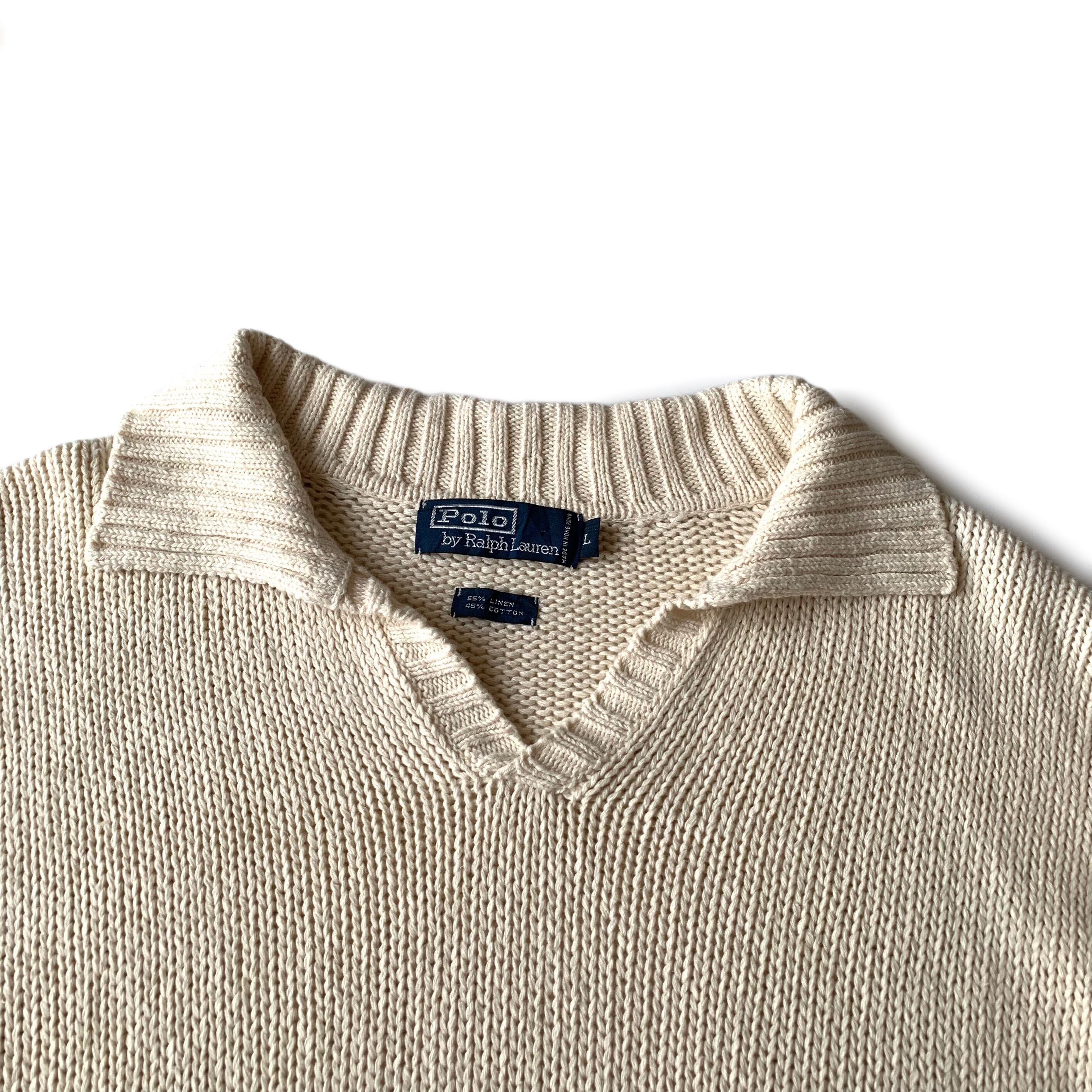 ラルフのセーターの中でもあまり見かけないスキッパーニット。しかもコットン×リネンの混紡ですのでオールシーズン着用頂けます。