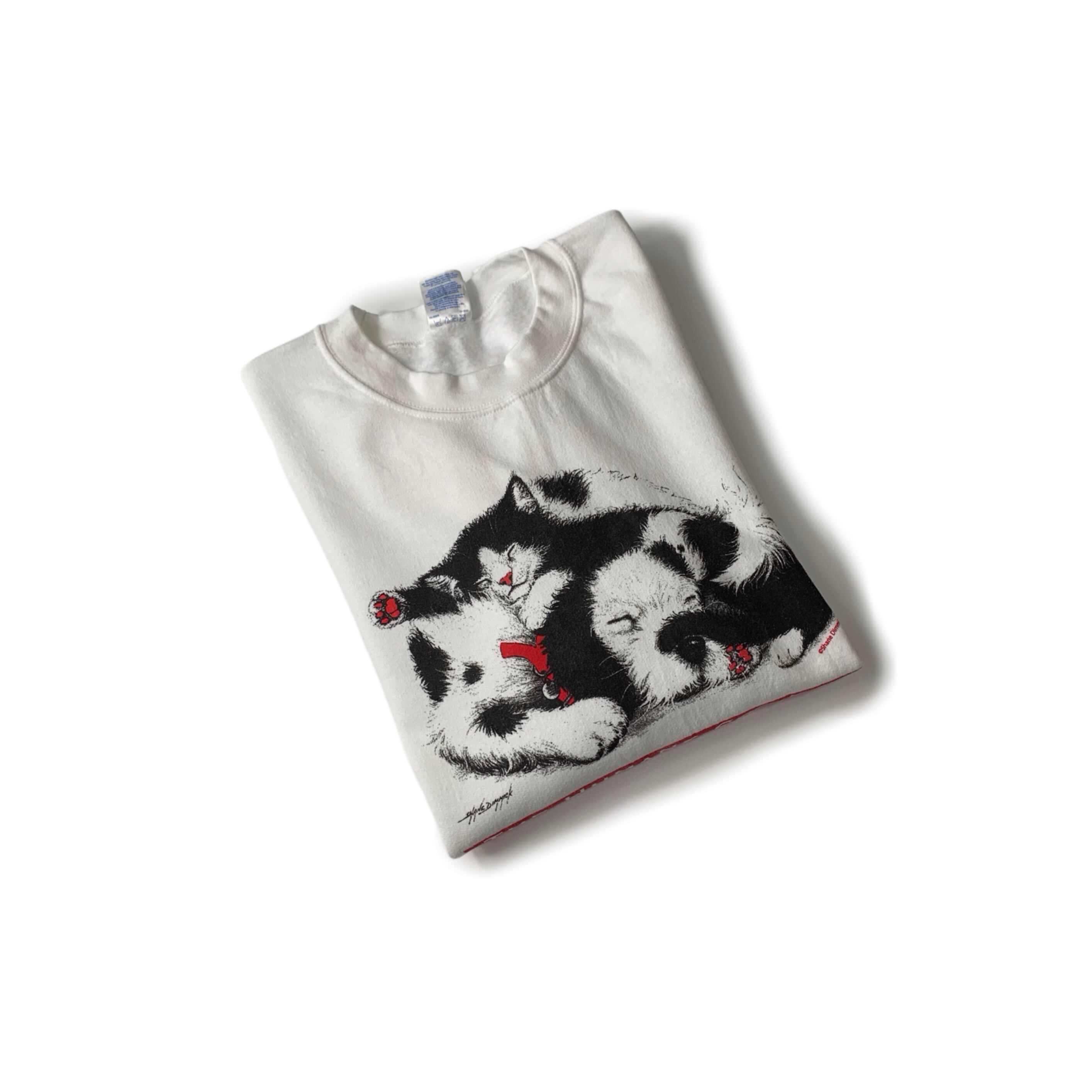くっついて寝ている犬と猫のプリントが可愛いらしいですね。