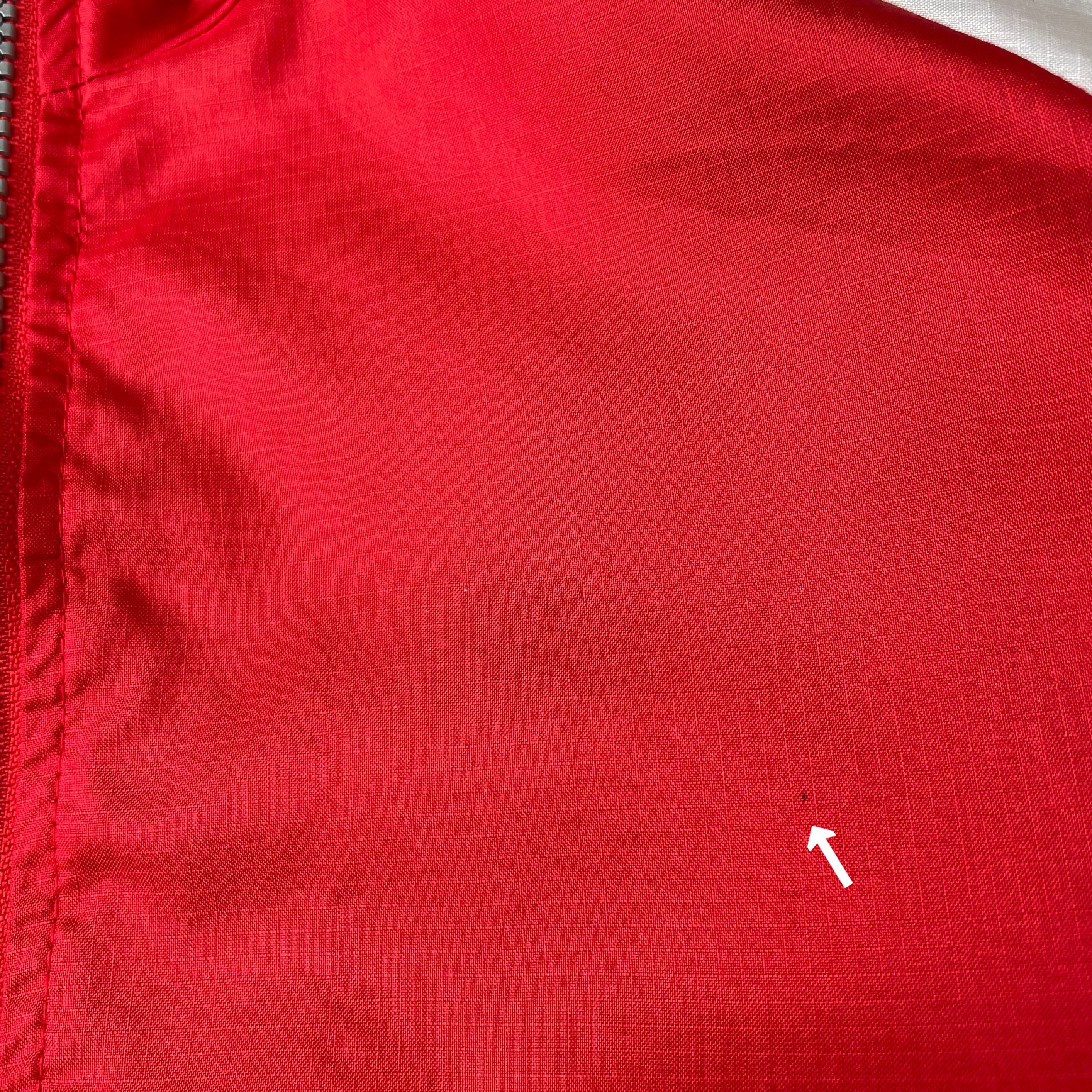 ・左胸、前身頃 右袖先、パッチ下に薄汚れがございます。