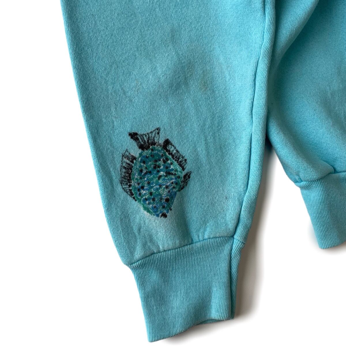 左袖先にはハンドペイントの魚が両面に描かれています。当時着ていた子供が描いたのでしょうか、、想像がすると可愛いらしいですね。