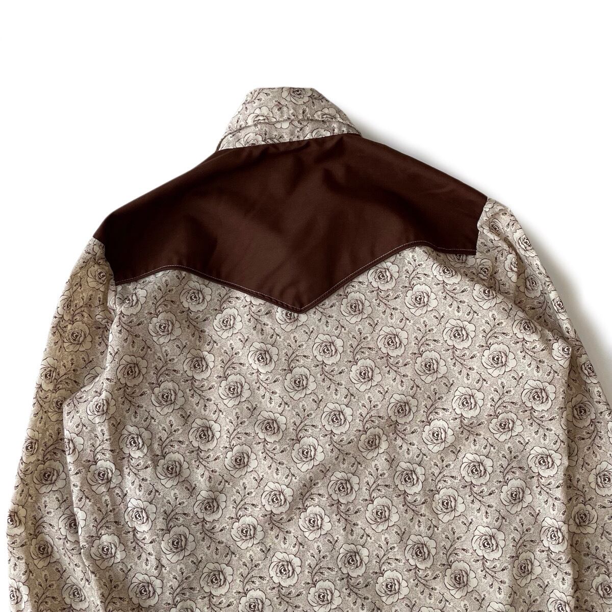 ブラウンベースの薔薇柄を基調とした70年代頃のウエスタンシャツ。