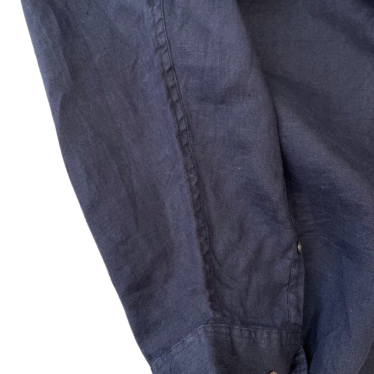 汎用性の高い無地のネイビーカラーが特徴的なバナリパのシャツ。