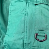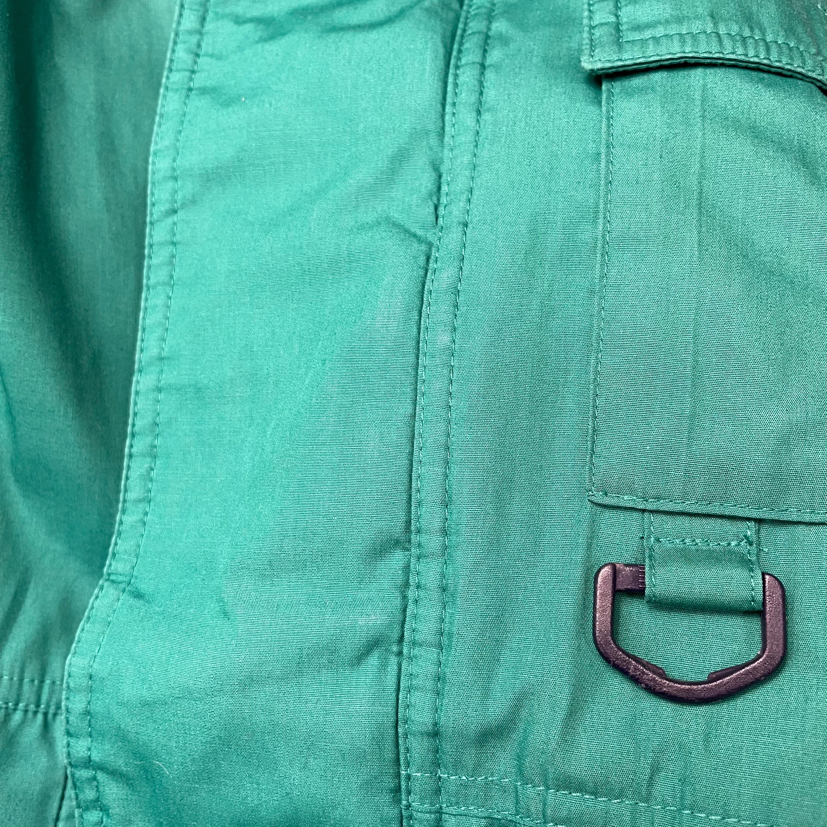 フロントはファスナーとベルクロ、スナップボタン仕様。ポケットはベルクロで開閉可能、袖はベルクロで調整出来ます。