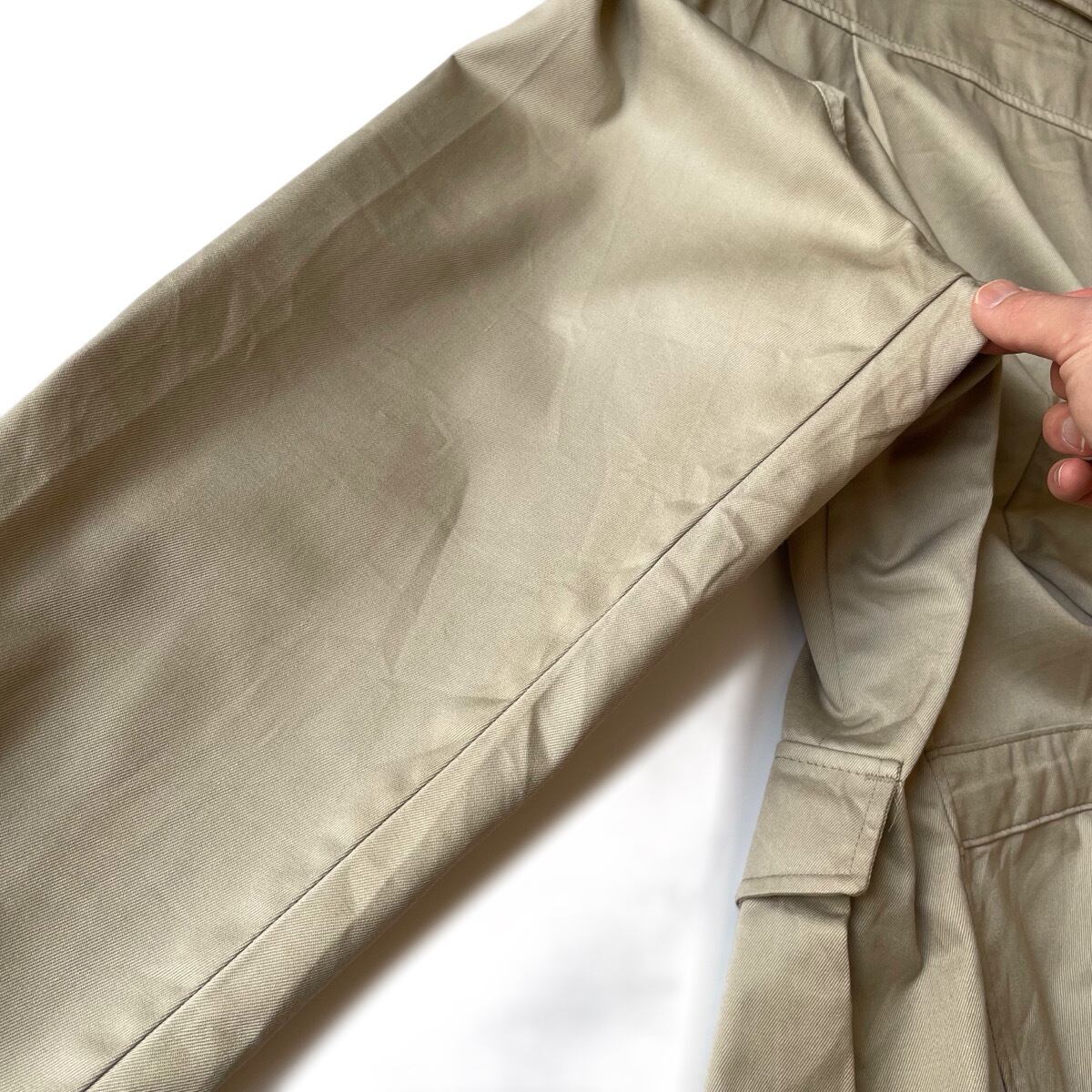 ポリエステル×コットン混紡のサファリシャツジャケット。比較的薄手ですのでシャツに近い感覚で羽織って頂けます。