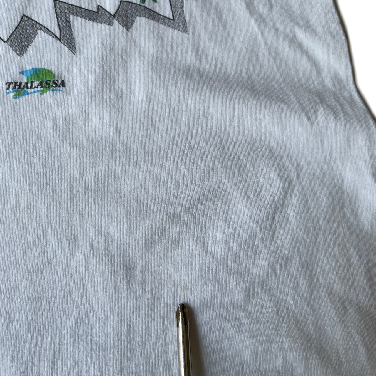 ・首リブ、前身頃 プリント下、後身頃 裾上にシミがございます。