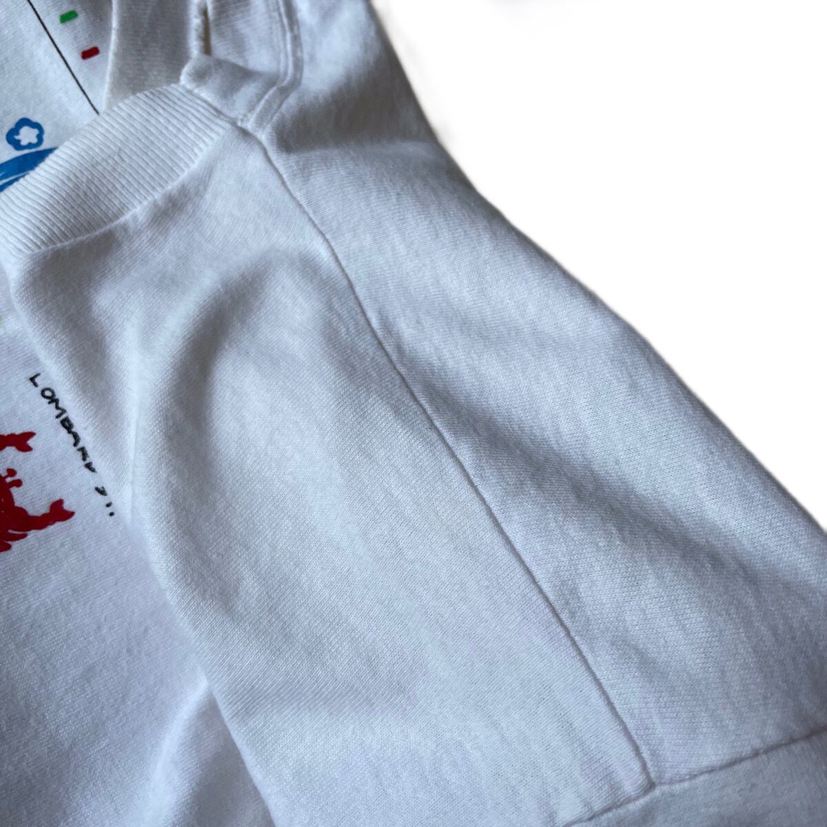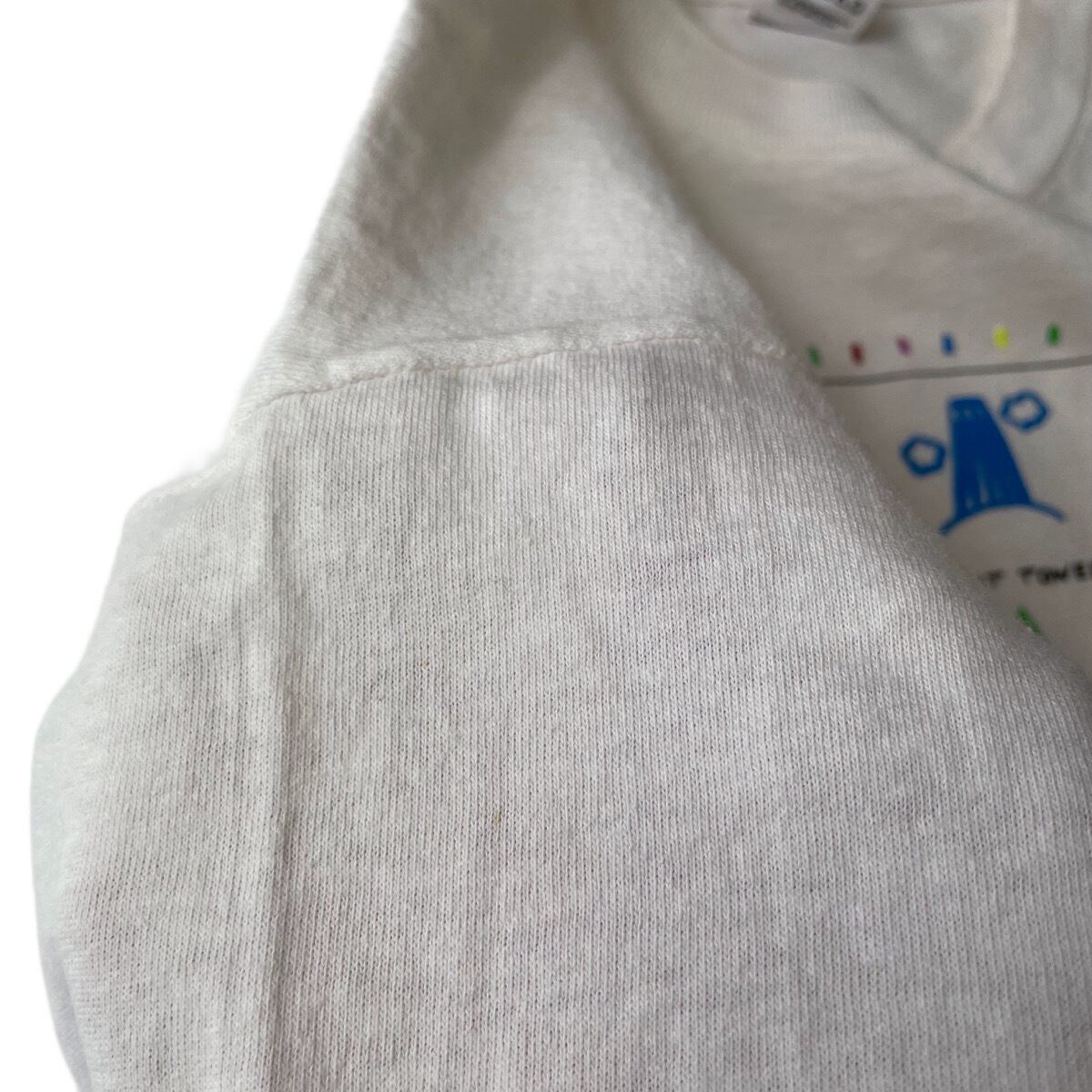 90年代のFRUIT OF THE LOOMボディを使用、袖・裾ともにシングルステッチ仕立ての1枚です。