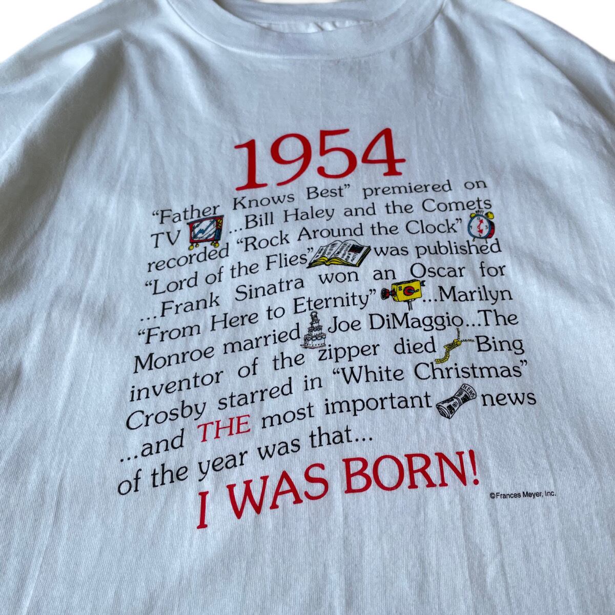 1954年に起こった出来事がつらつらと記されており、最後に”この年に起こった最も重要な事は私が生まれたこと”と書かれています。