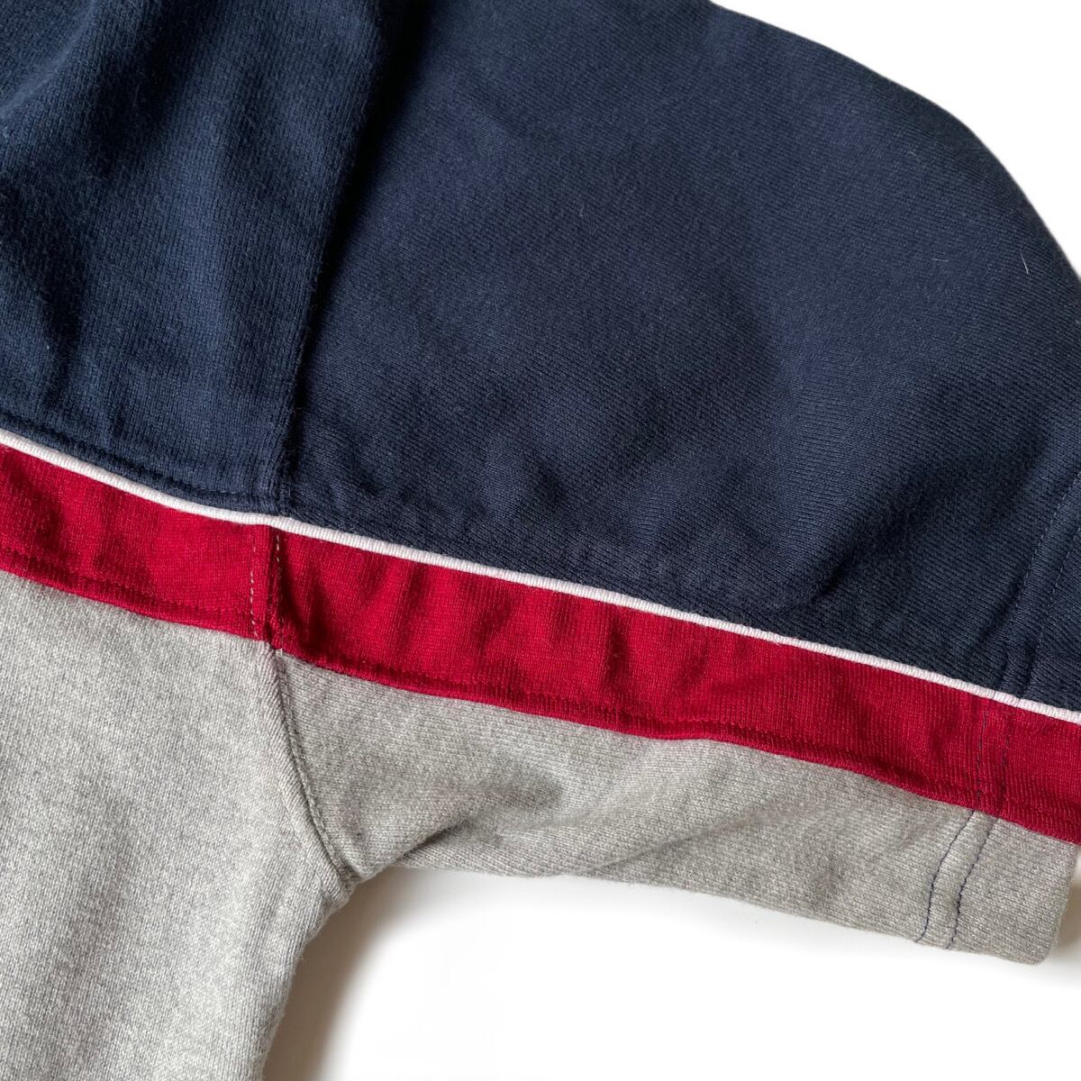 ネイビー×ホワイト×レッド×グレーのマルチカラー、胸元にラインが入ったデザイン。