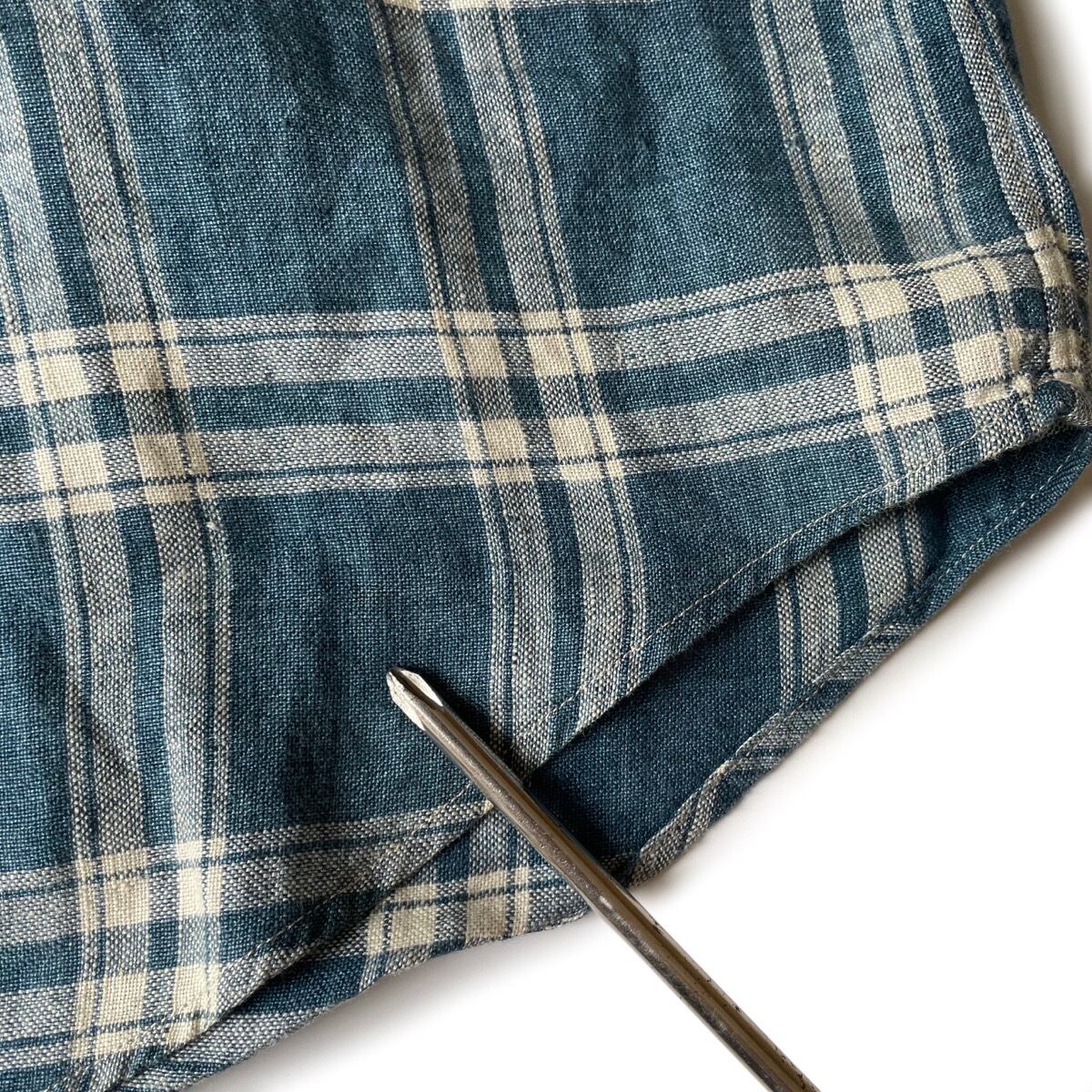 リネン素材で仕立てられたオーソドックスなワークシャツ型の『WHITFIELD』。