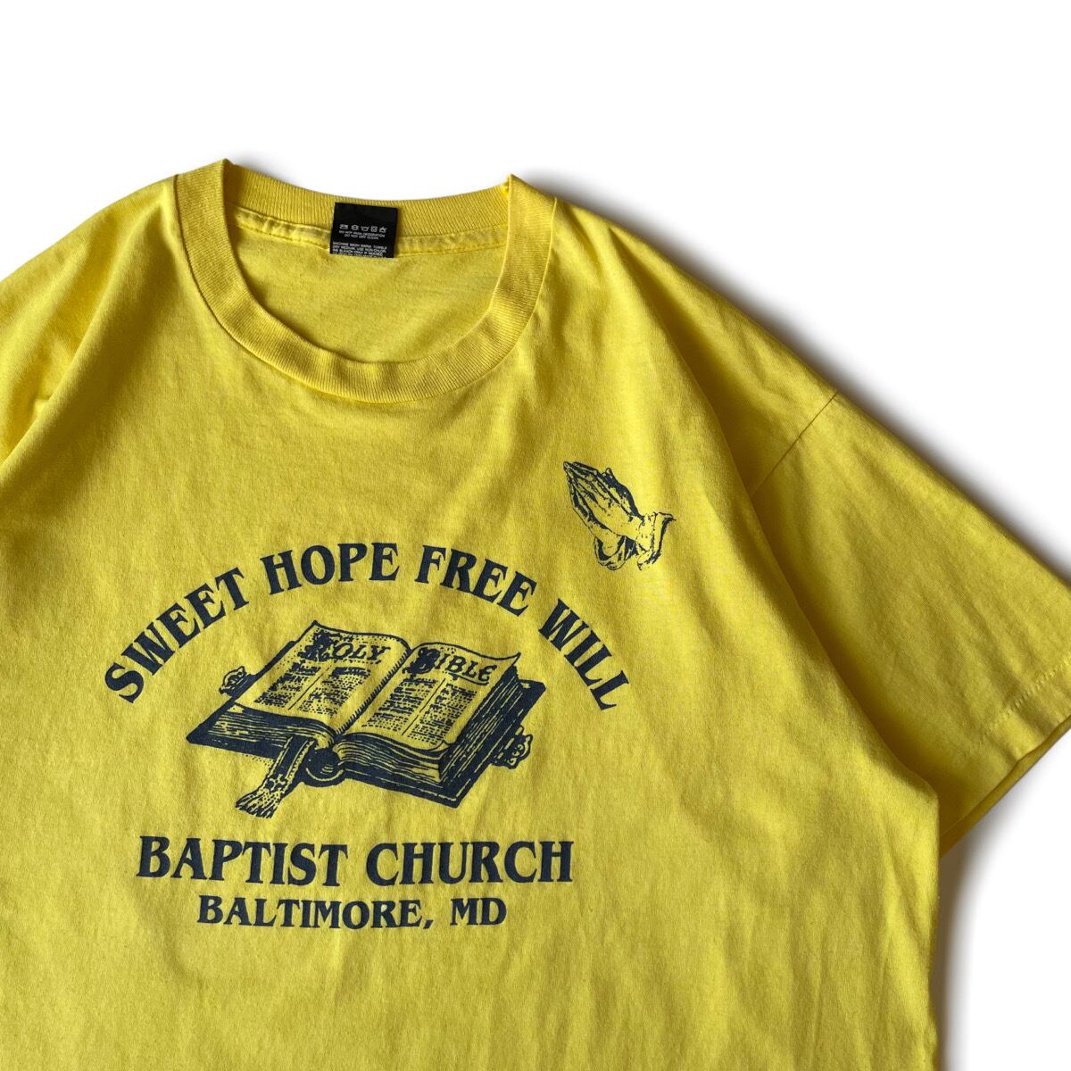 キリスト教の”BAPTIST CHURCH バプテスト教会”(メリーランド州 ボルチモアに位置)のプリントTシャツ。