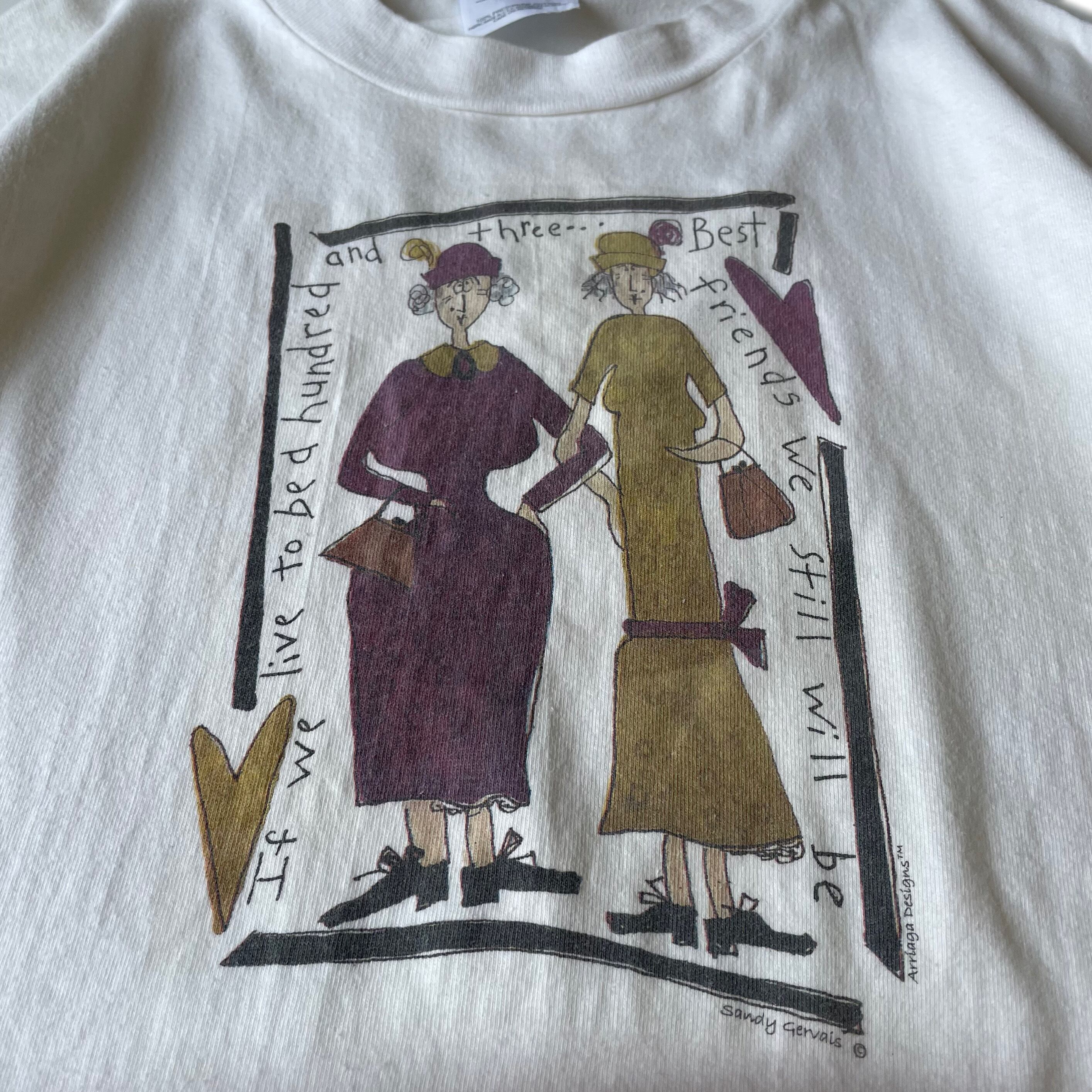 デザイナーであるSandy Gervais のイラストが描かれた1枚。手を組んだおばあちゃんたちの友情にほっこりしますね。