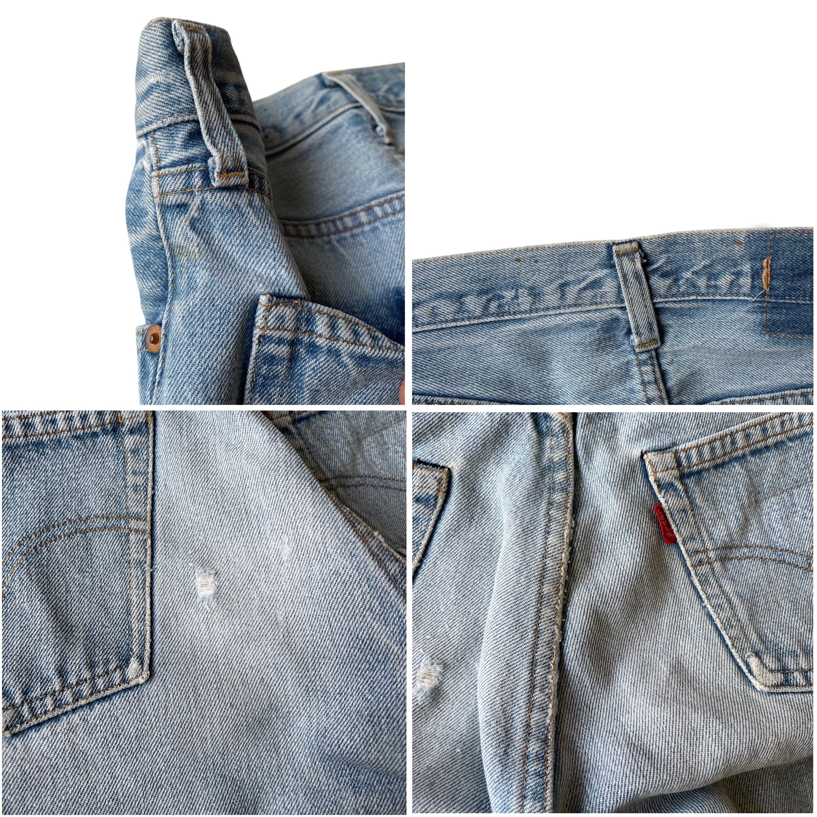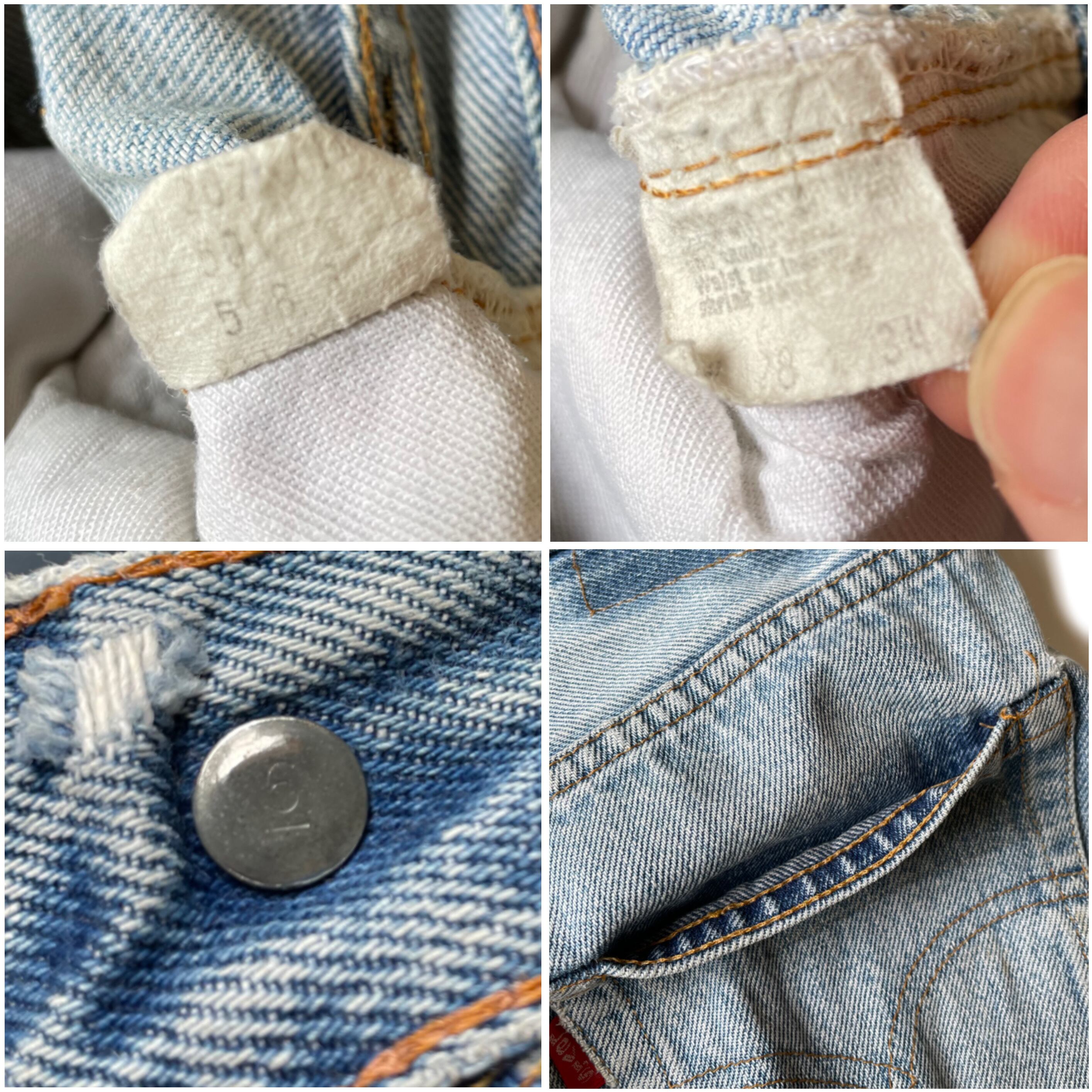 裾は丈つめされており、シングルステッチとなります。紙パッチは欠損しております。
