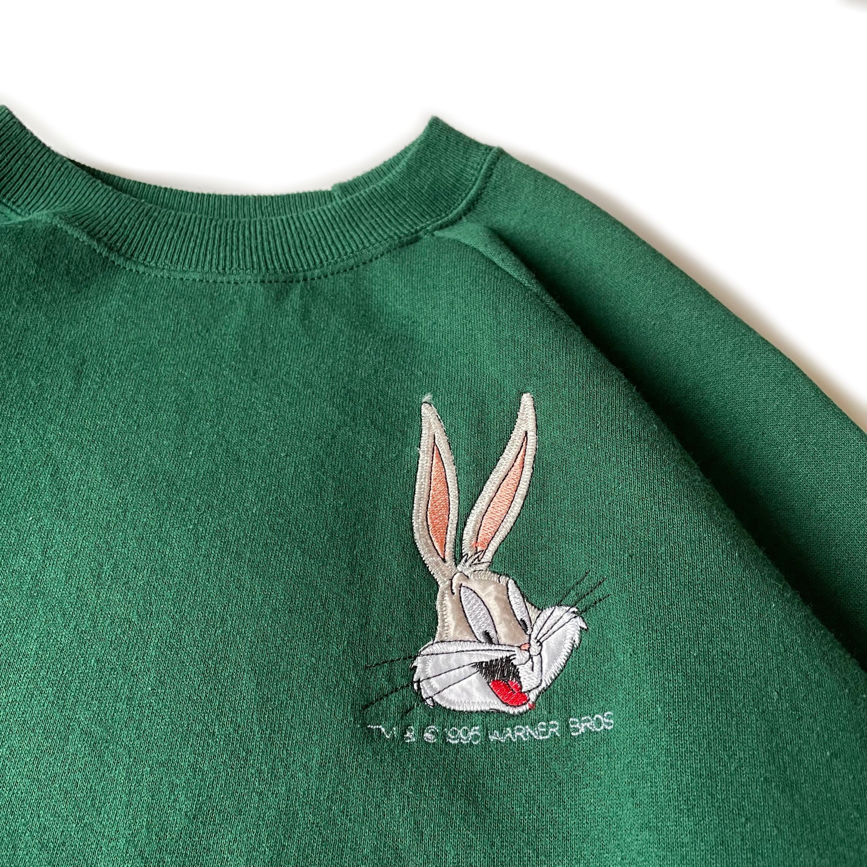 本作に登場する”バッグス・バニー”の刺繍が施されています。©️1995、Hanesボディの逸品になります。