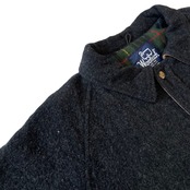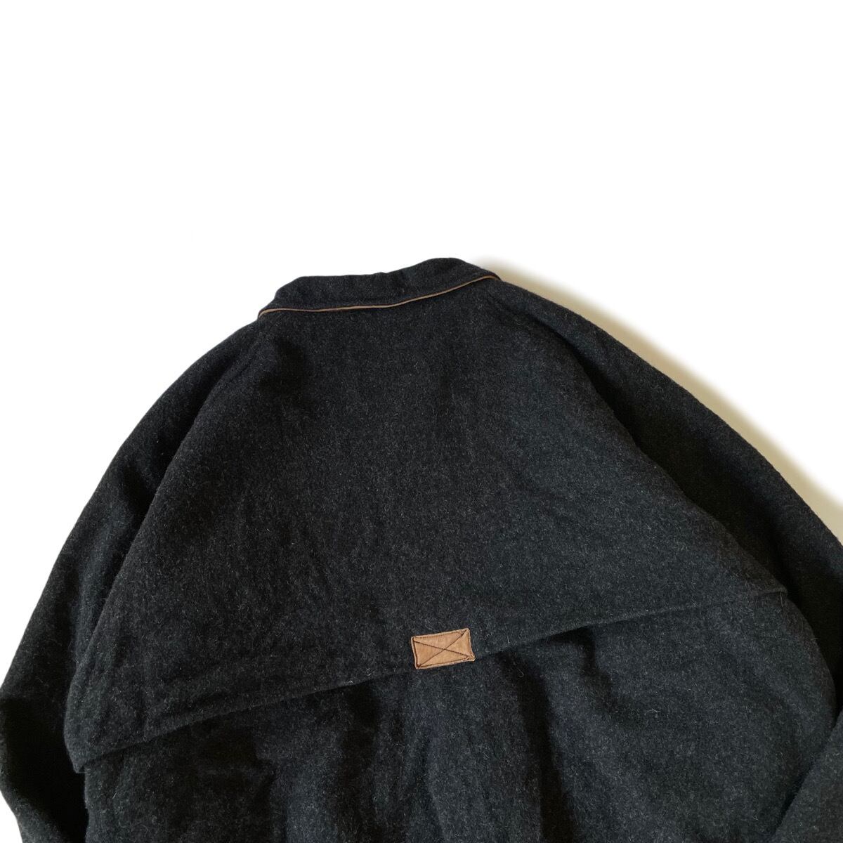 肉厚なウールを採用、裏地にはチェック柄のウール地を使用しています。襟裏や前立て裏にはレザーが配置されており、非常に凝った作りです。