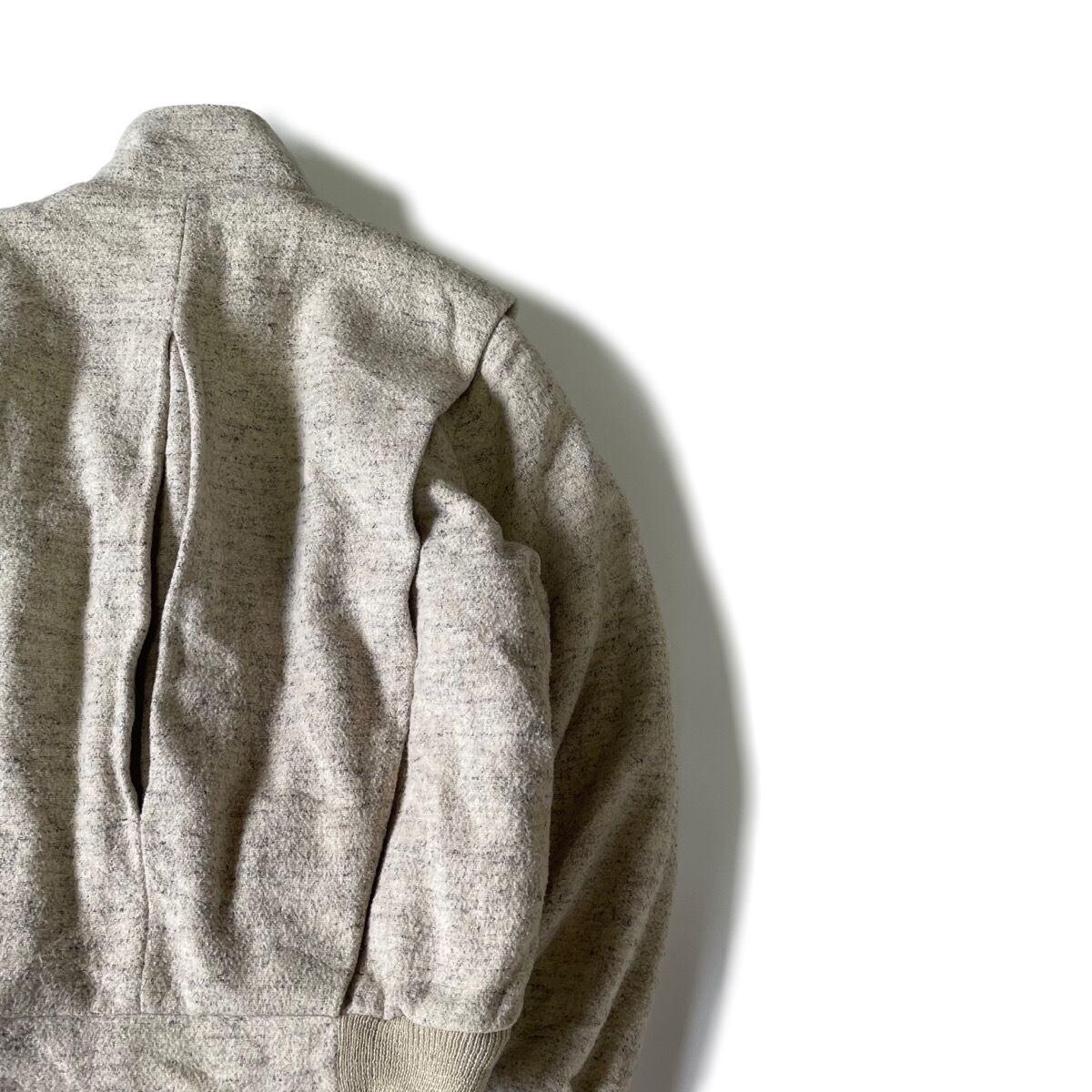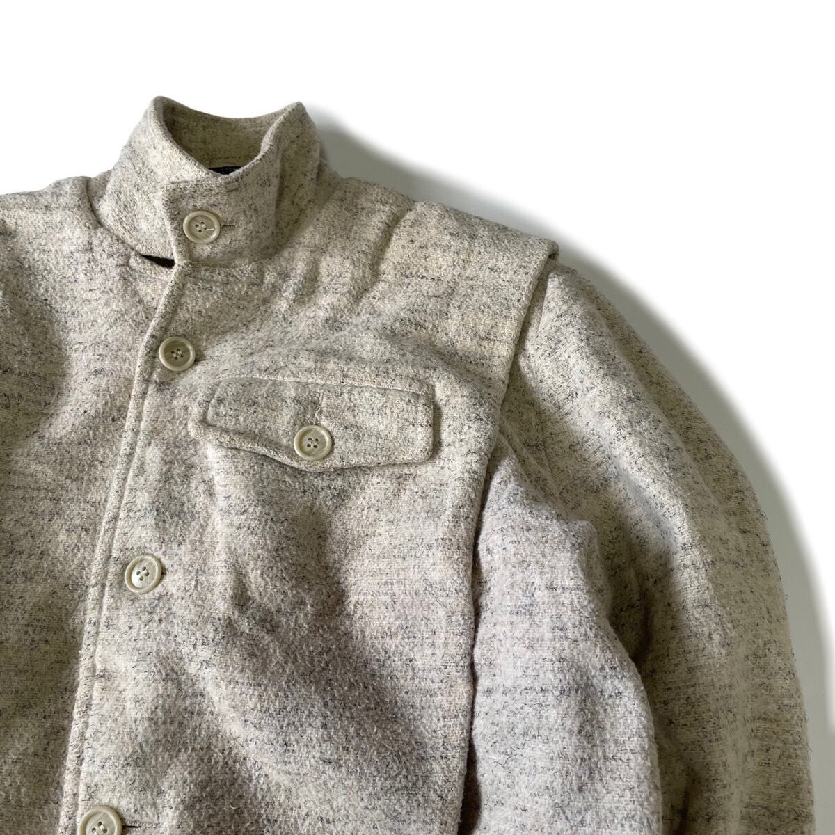 シェルはネップの飛んだウール、裏地は中綿入りのキルティングで防寒性抜群。