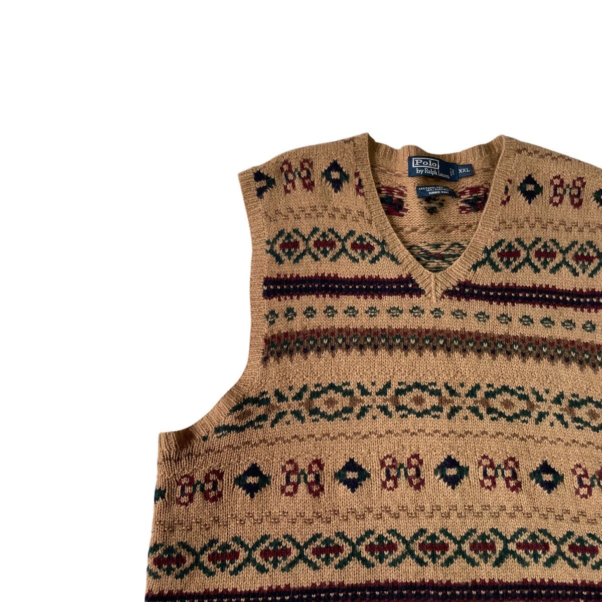 90年代のポロ・ラルフローレンのフェアアイル柄のハンドニットベストです。