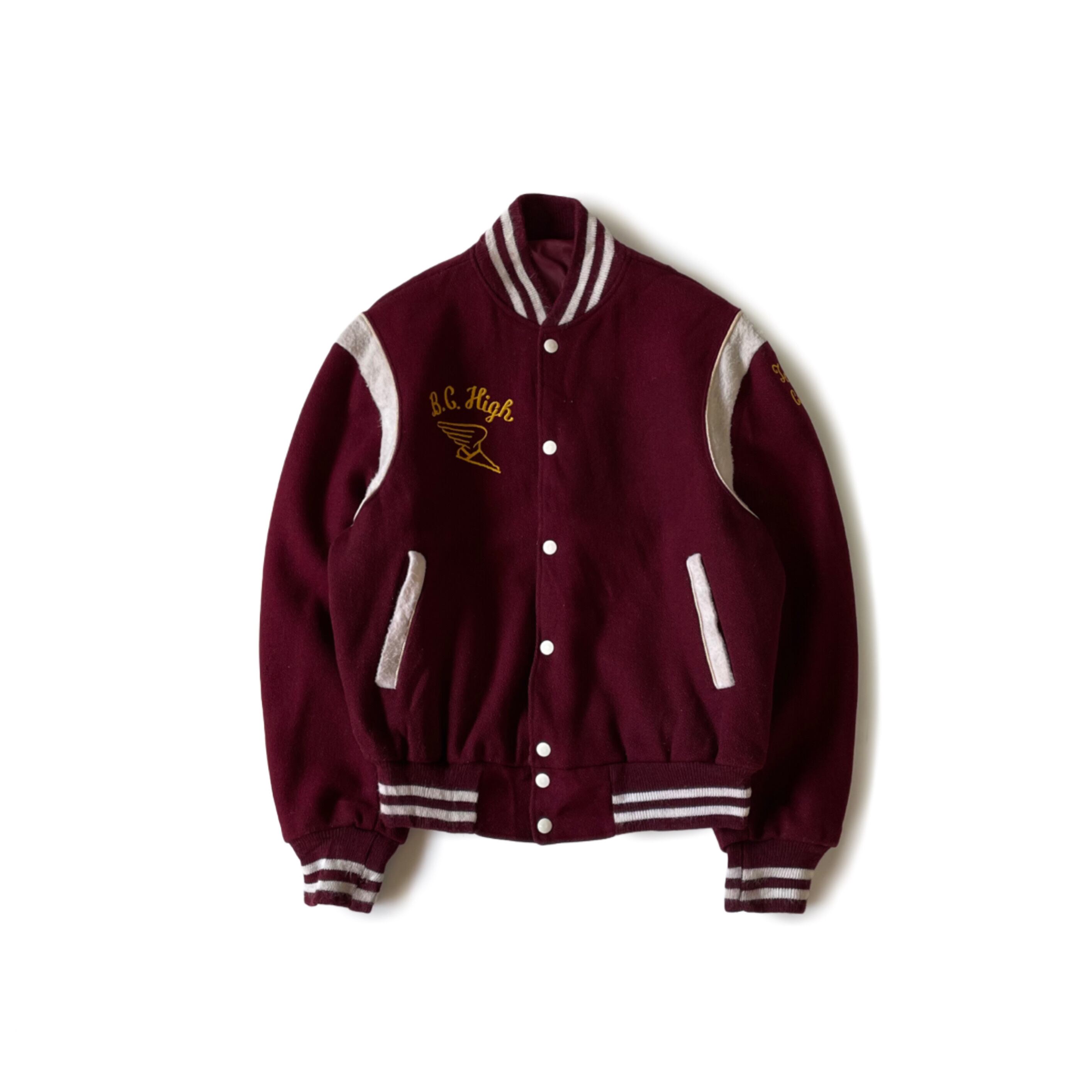 右胸には”Boston College High School “とウイングフット。左袖には”Jerry Capt.”という刺繍が施されています。。