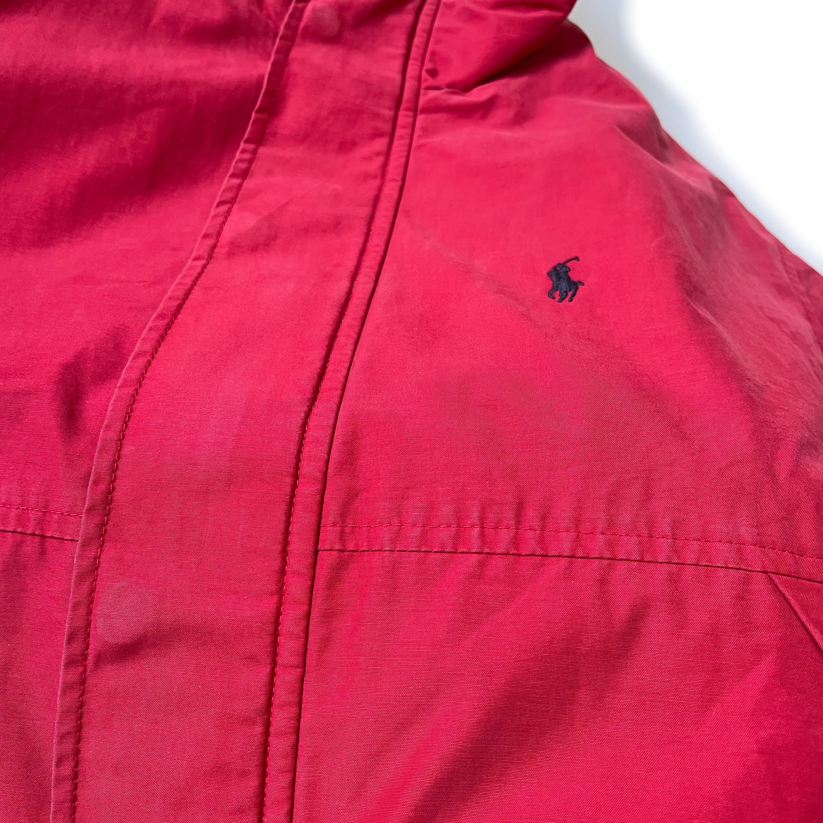 パッと目を引くレッドカラーに左胸にはお馴染みのポニー刺繍。