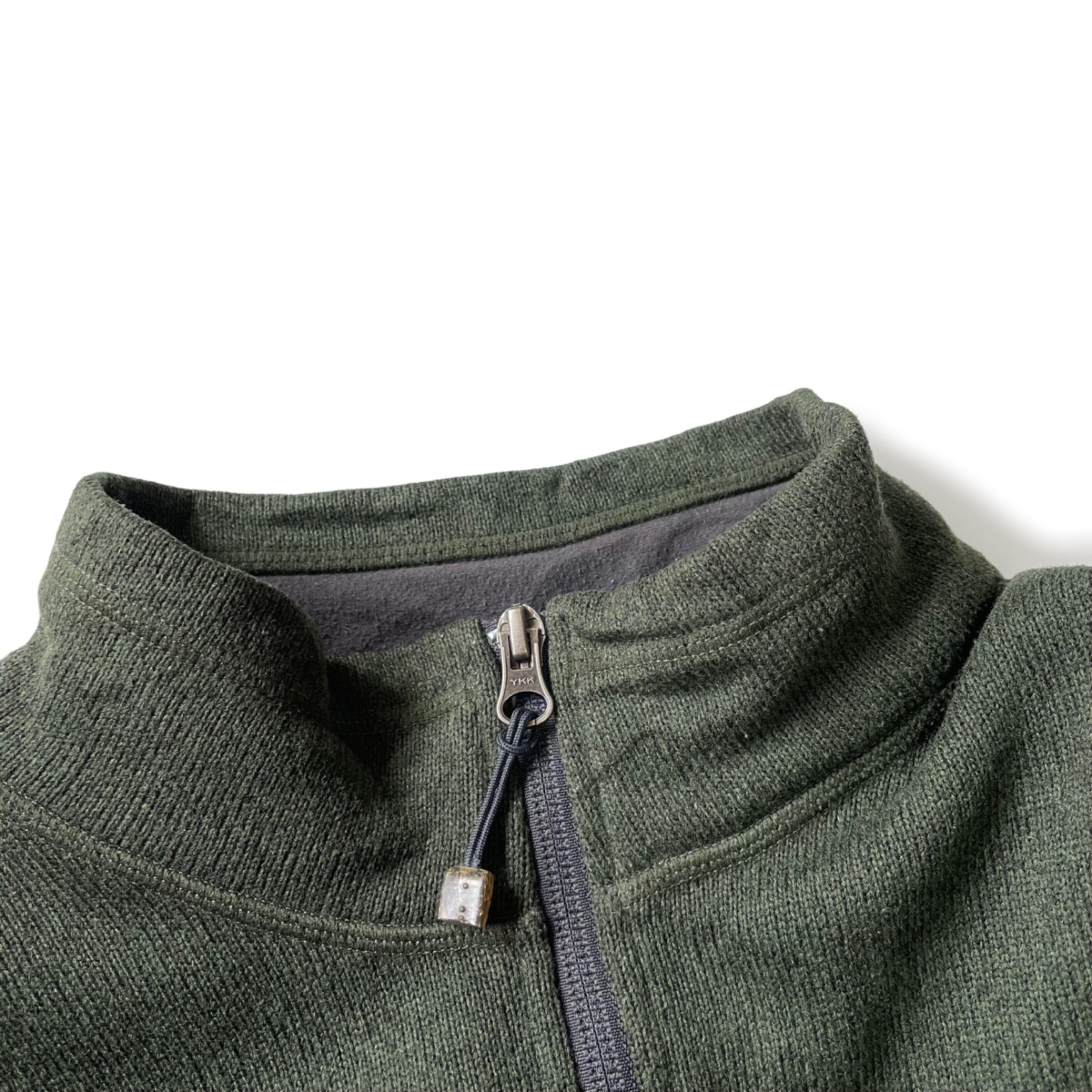 襟元はハイネックのハーフジップ仕様、左胸にはチェストポケット付きです。